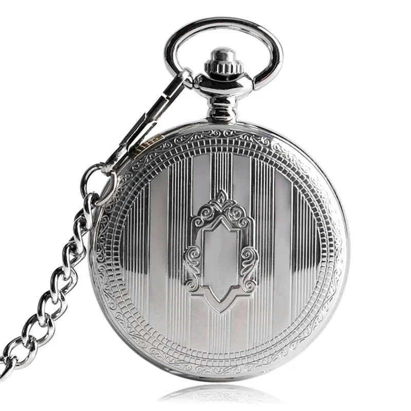 Серебряный Щит Полный Охотник чехол для мужчин для женщин Скелет Автоматические Механические карманные часы с арабскими цифрами Ретро часы кулон подарок