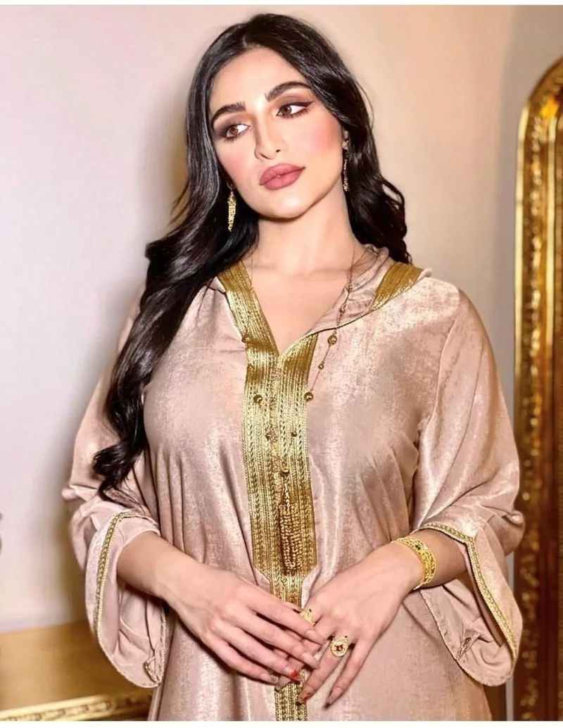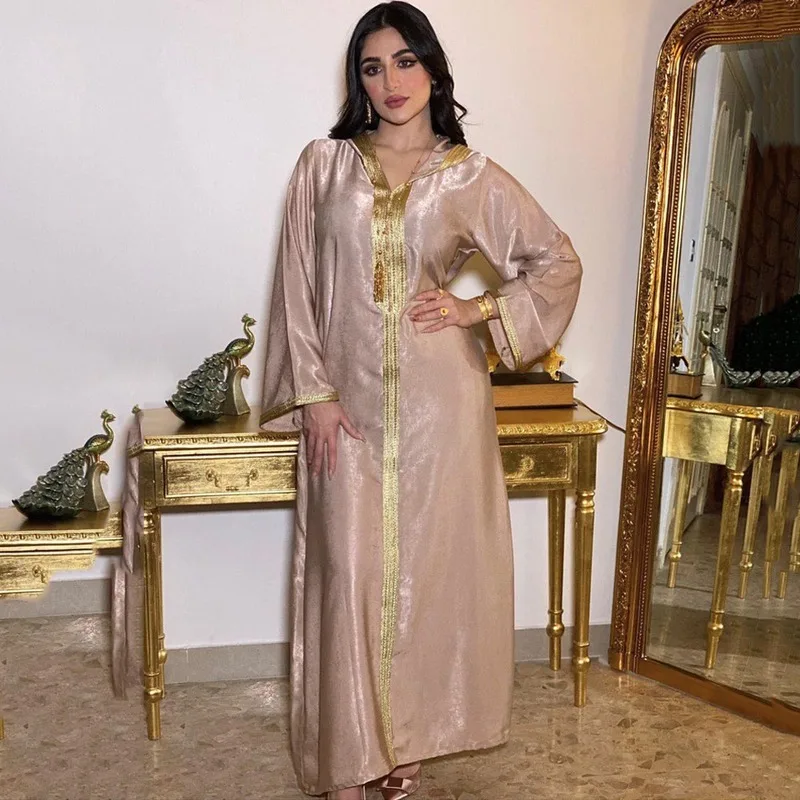 Платье-абайя женское с капюшоном, Дубай, арабское мусульманское, цвет шампанского, марокканский кафтан, турецкий исламский халат, Jalabiya, осень 2020