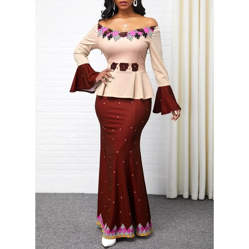 Женский комплект из 2 предметов Дашики, комплект из двух предметов в африканском стиле с длинным рукавом, укороченный топ, костюмы миди с юбкой, повседневная одежда с принтом, одежда в африканском стиле