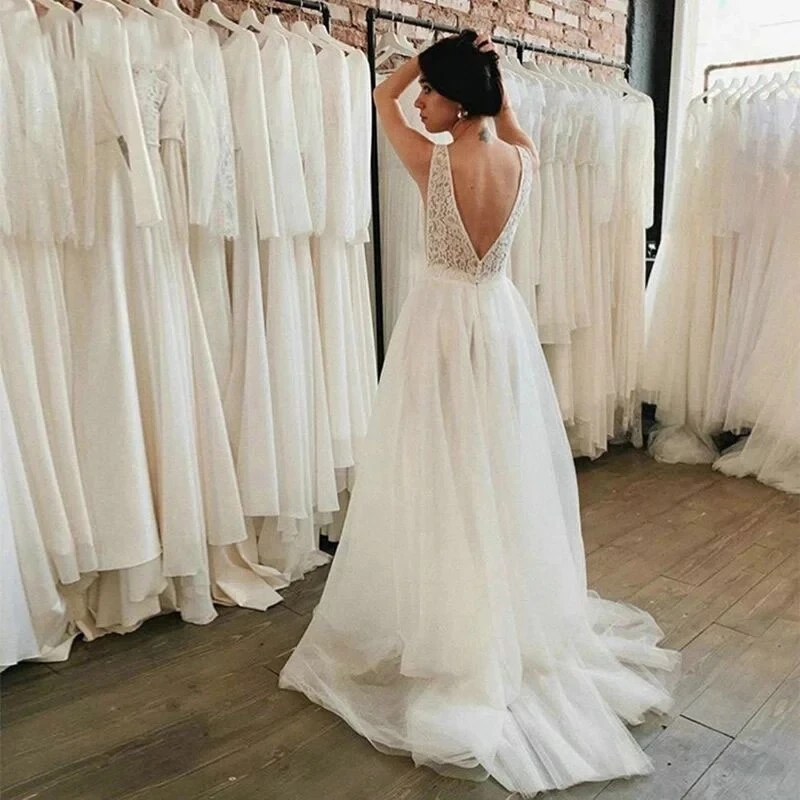 Женское свадебное платье It's yiiya, белое кружевное платье без рукавов с V-образным вырезом на лето 2019