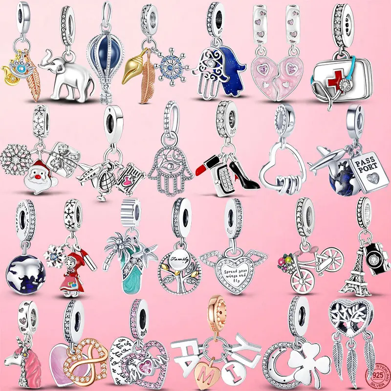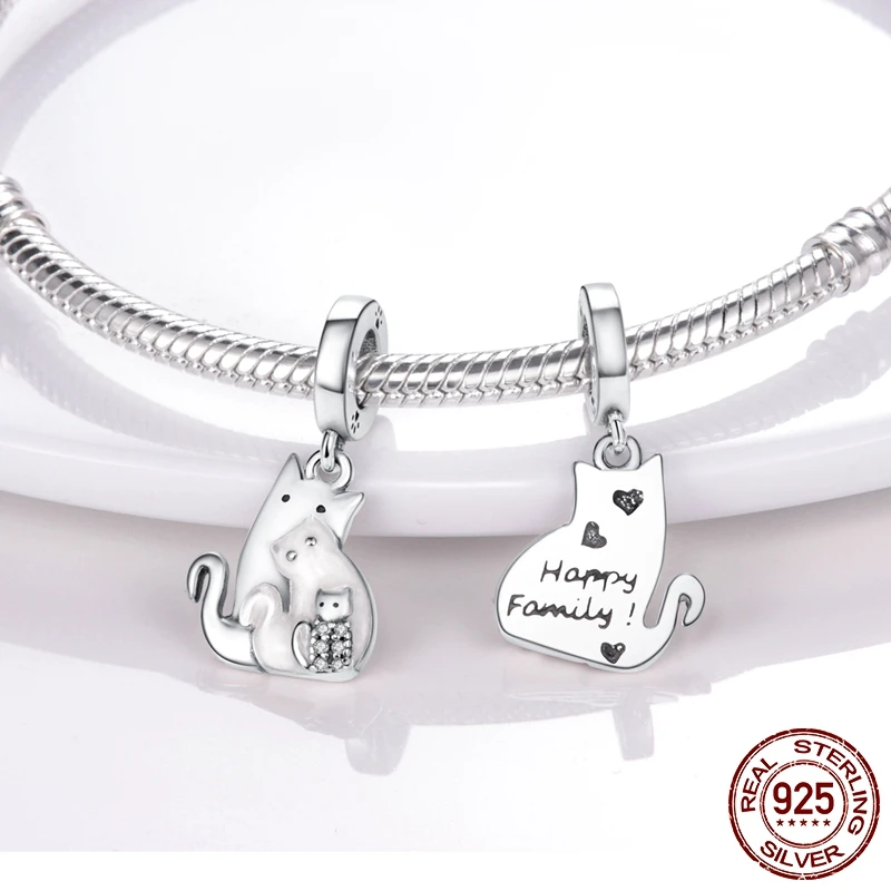 Лидер продаж, бусины из стерлингового серебра 925 пробы в виде семейных любовных животных, подвески в виде звезды, луны, подходят для оригинального браслета Пандоры, подвеска для ожерелья, ювелирные изделия