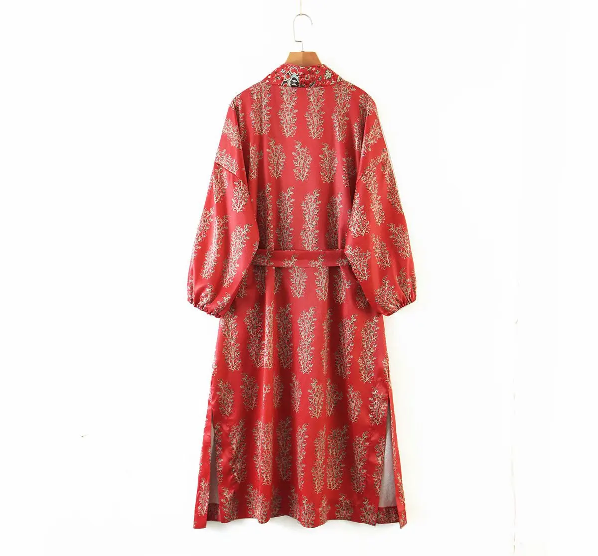Платье-кимоно женское, атласное, с длинным рукавом и цветочным принтом, с разрезом сбоку, в стиле бохо, 2021