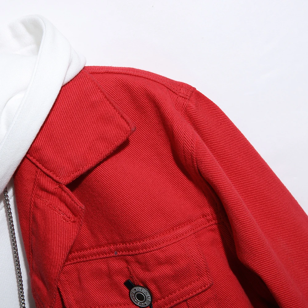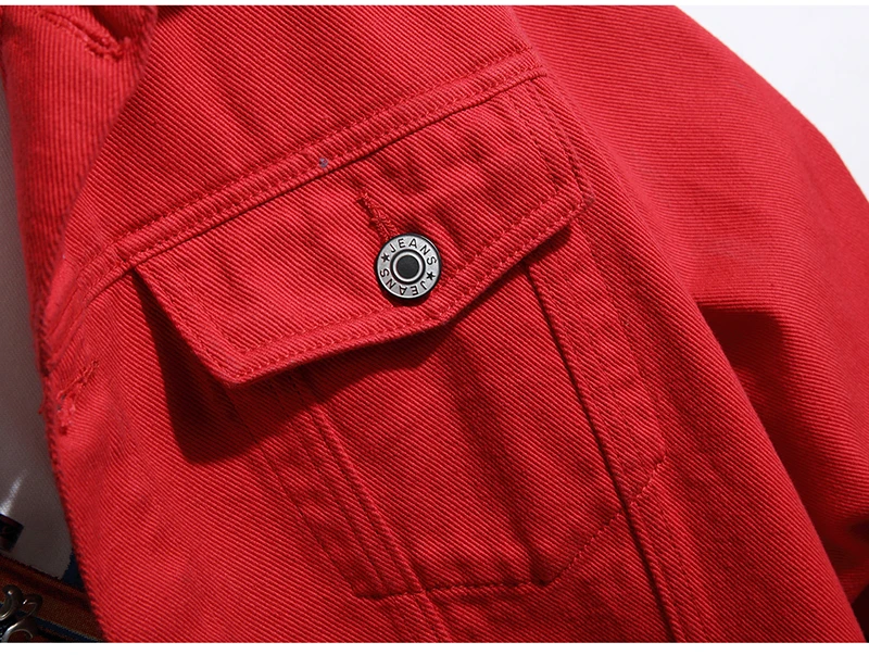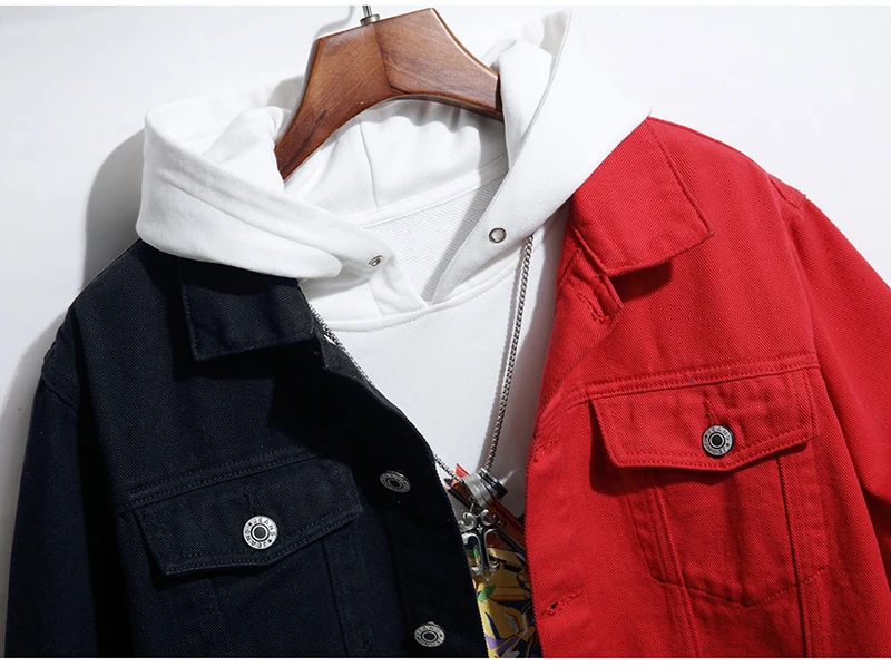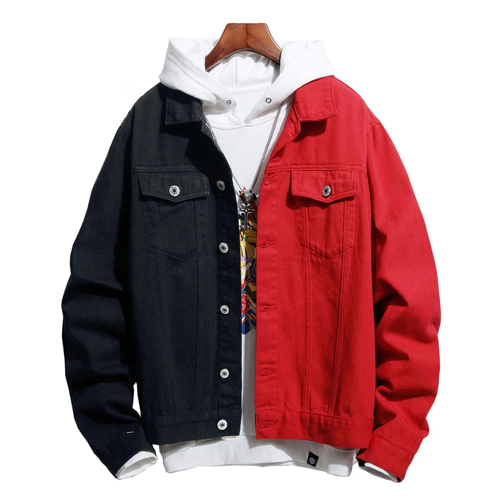 Куртка мужская, черная, красная, уличная Свободная джинсовая куртка, верхняя одежда, соединенный внакрой деним
