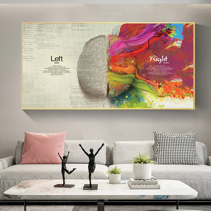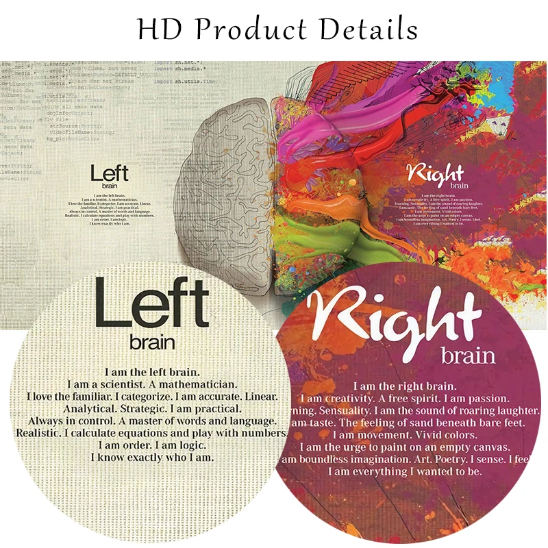Абстрактная Картина на холсте с функцией левого и правого мозга, образовательная печать, классная комната, Настенная картина, Постер для украшения дома
