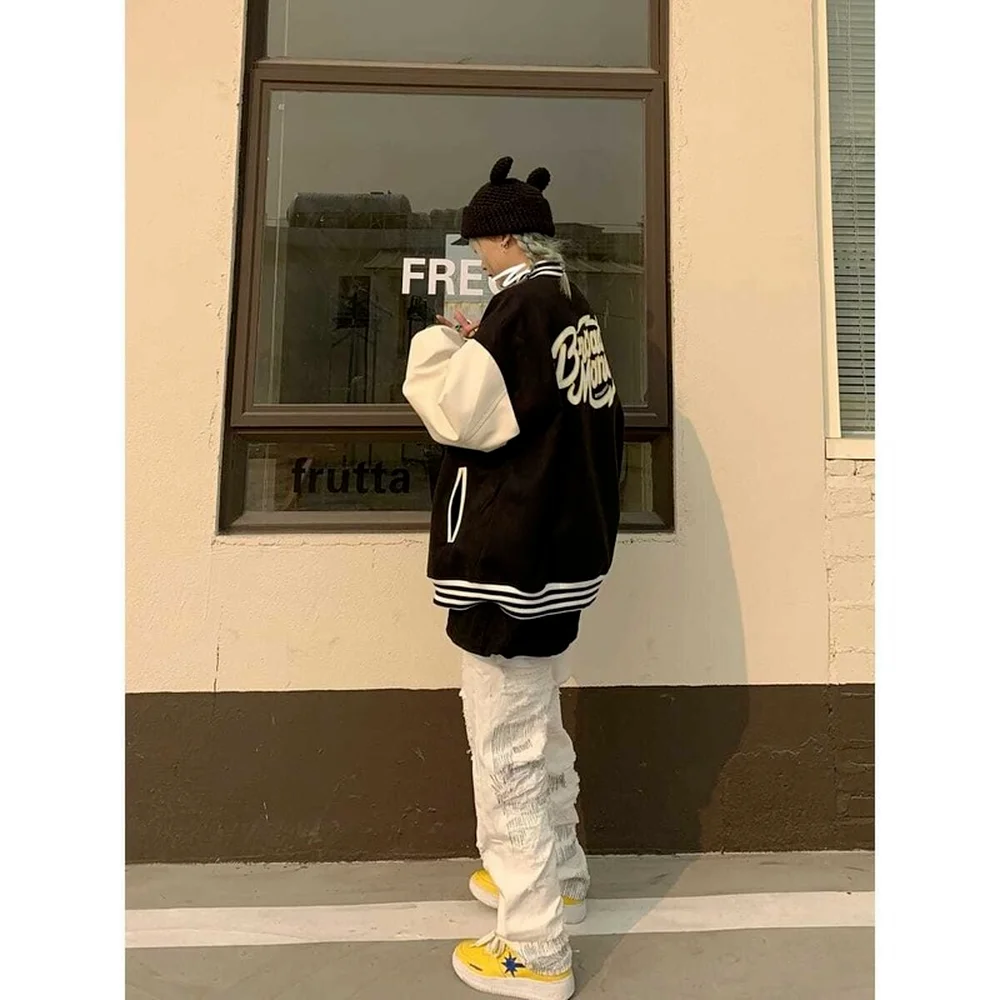 Женская куртка большого размера с цветными блокировками и надписью, повседневные женские пальто в стиле пэчворк для зимних курток, Женская бейсбольная форма в Корейском стиле, M