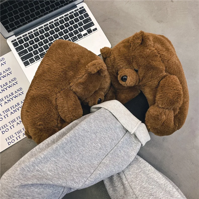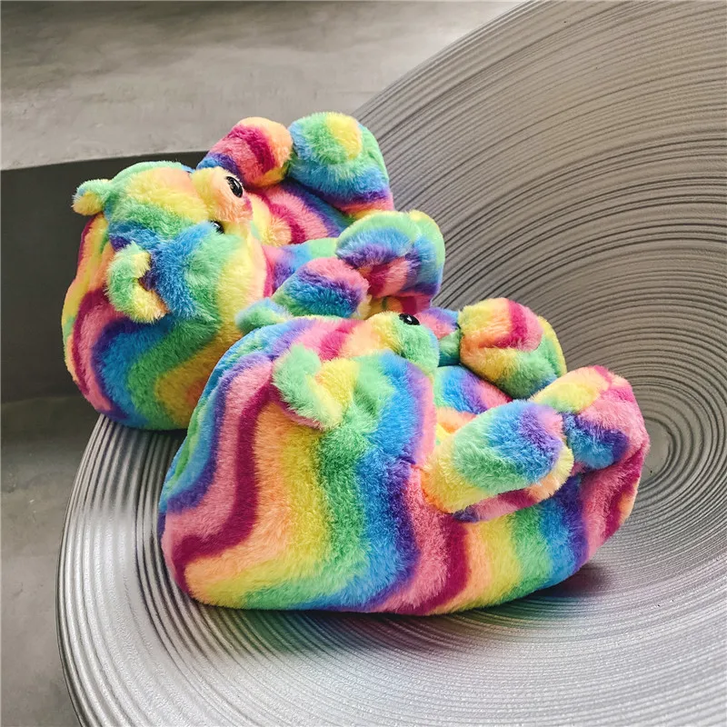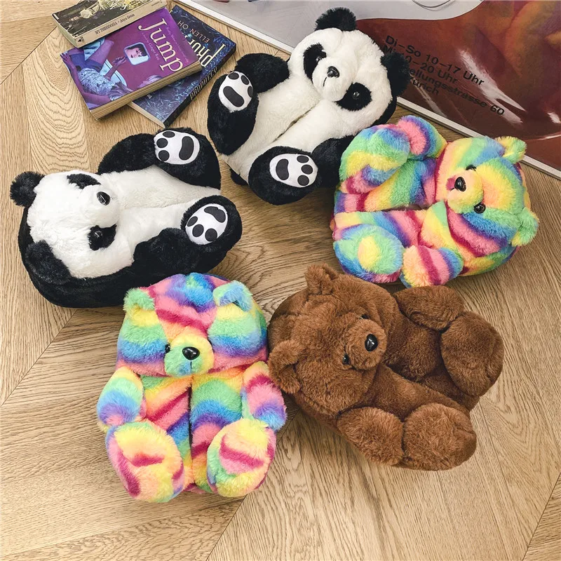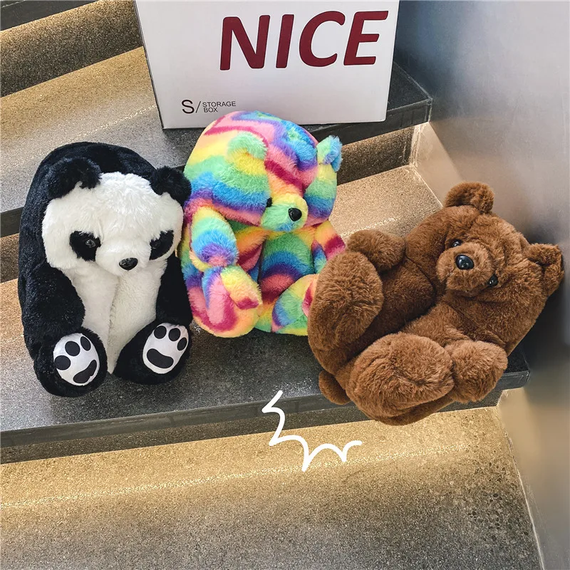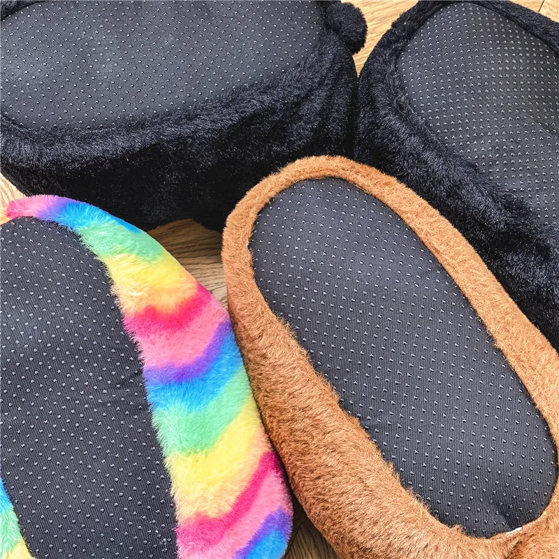 Дизайнерские зимние меховые тапочки для мужчин и женщин, теплые пуш...