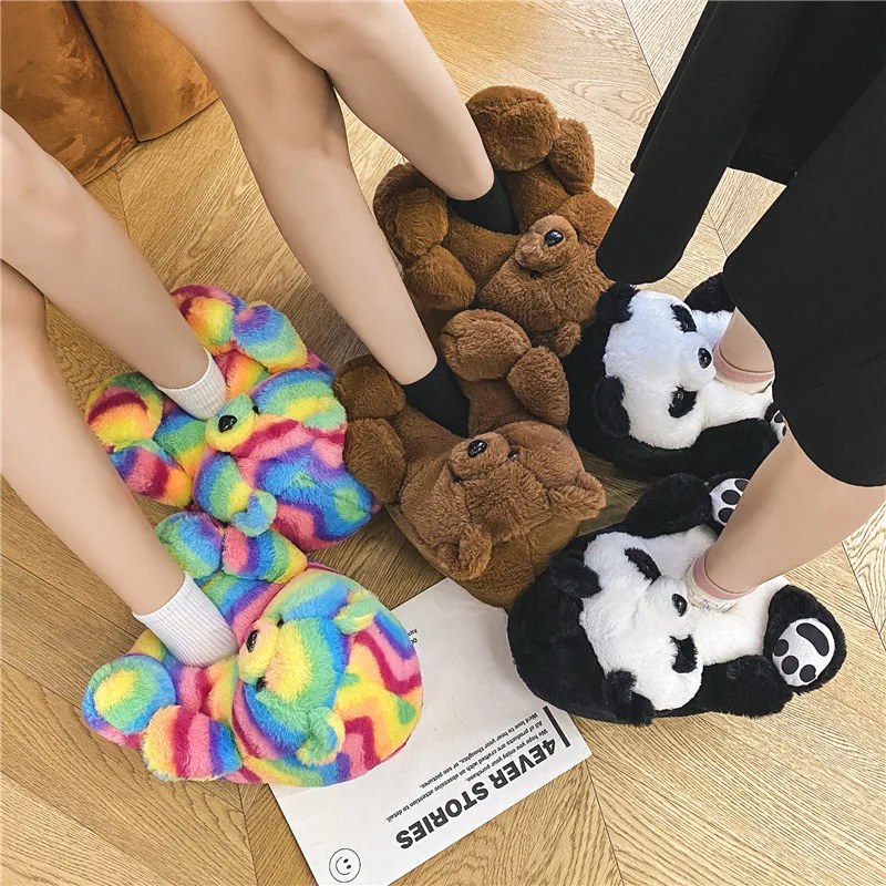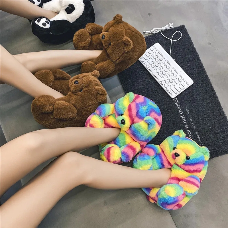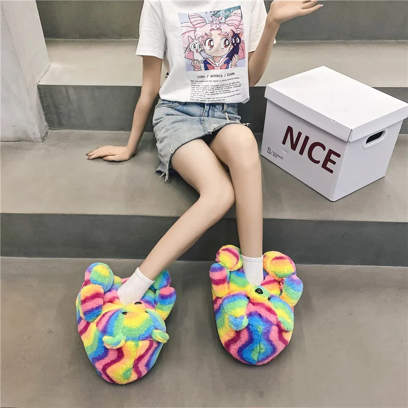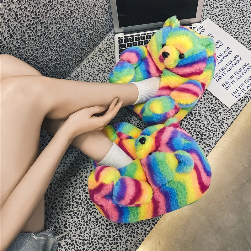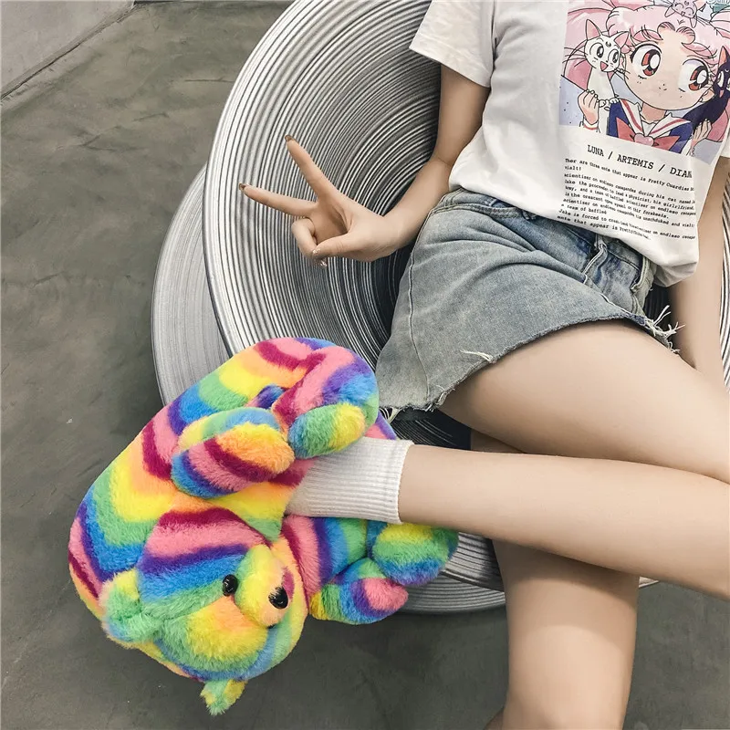 Дизайнерские зимние меховые тапочки для мужчин и женщин, теплые пуш...