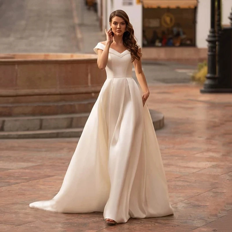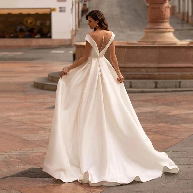 Кружевное атласное свадебное платье LUXIYIAO LO145, с открытыми плечами, с пуговицами на спине, на заказ