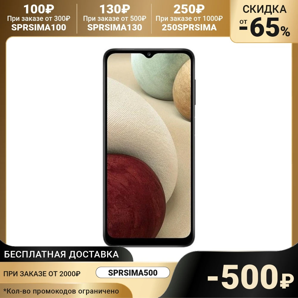 Смартфон Samsung Galaxy A12 SM-A125F, 6.5", TFT, 4Гб, 64Гб, 48Мп, 5000мАч, черный 6777079