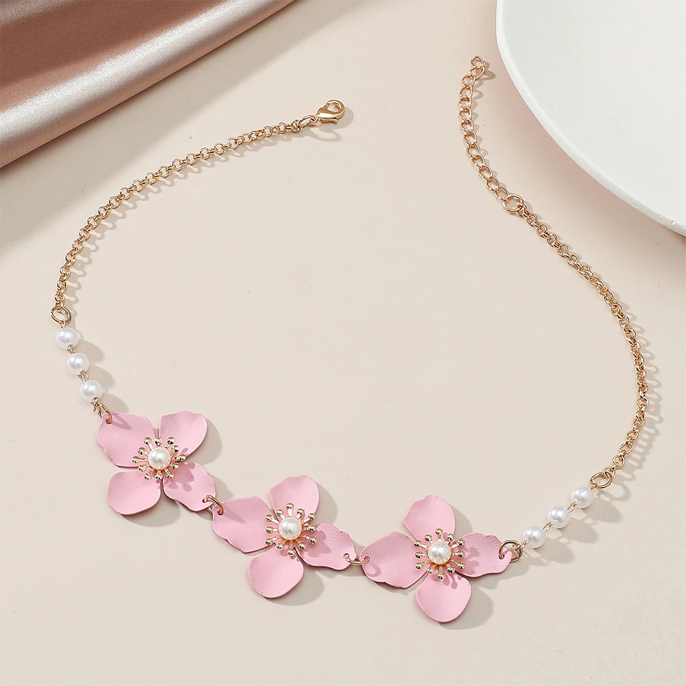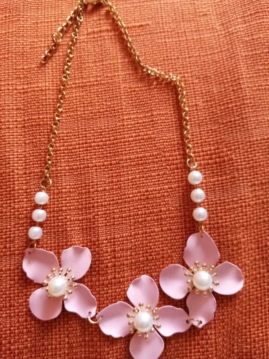 Ожерелье женское, золотистое, розовое, с жемчугом