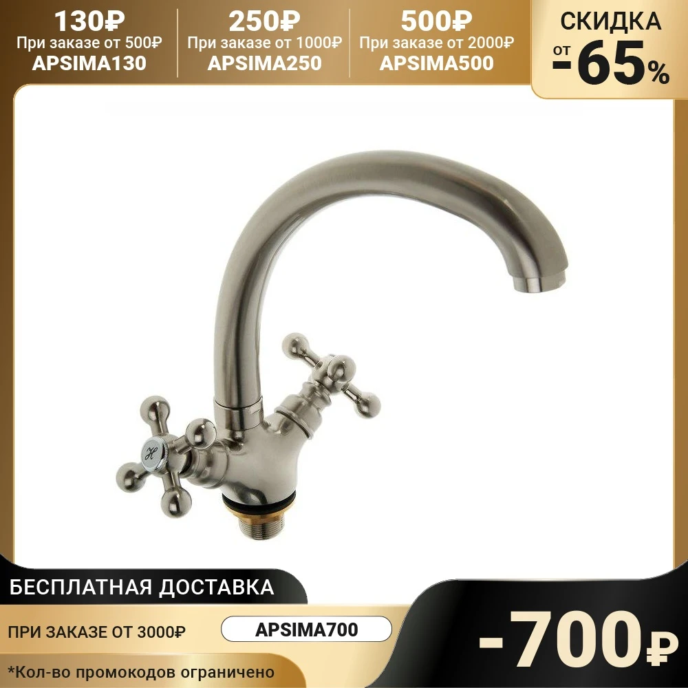 Cмеситель для кухни Accoona A4071A, двухвентильный, с гайкой, латунь, сатин 3114380