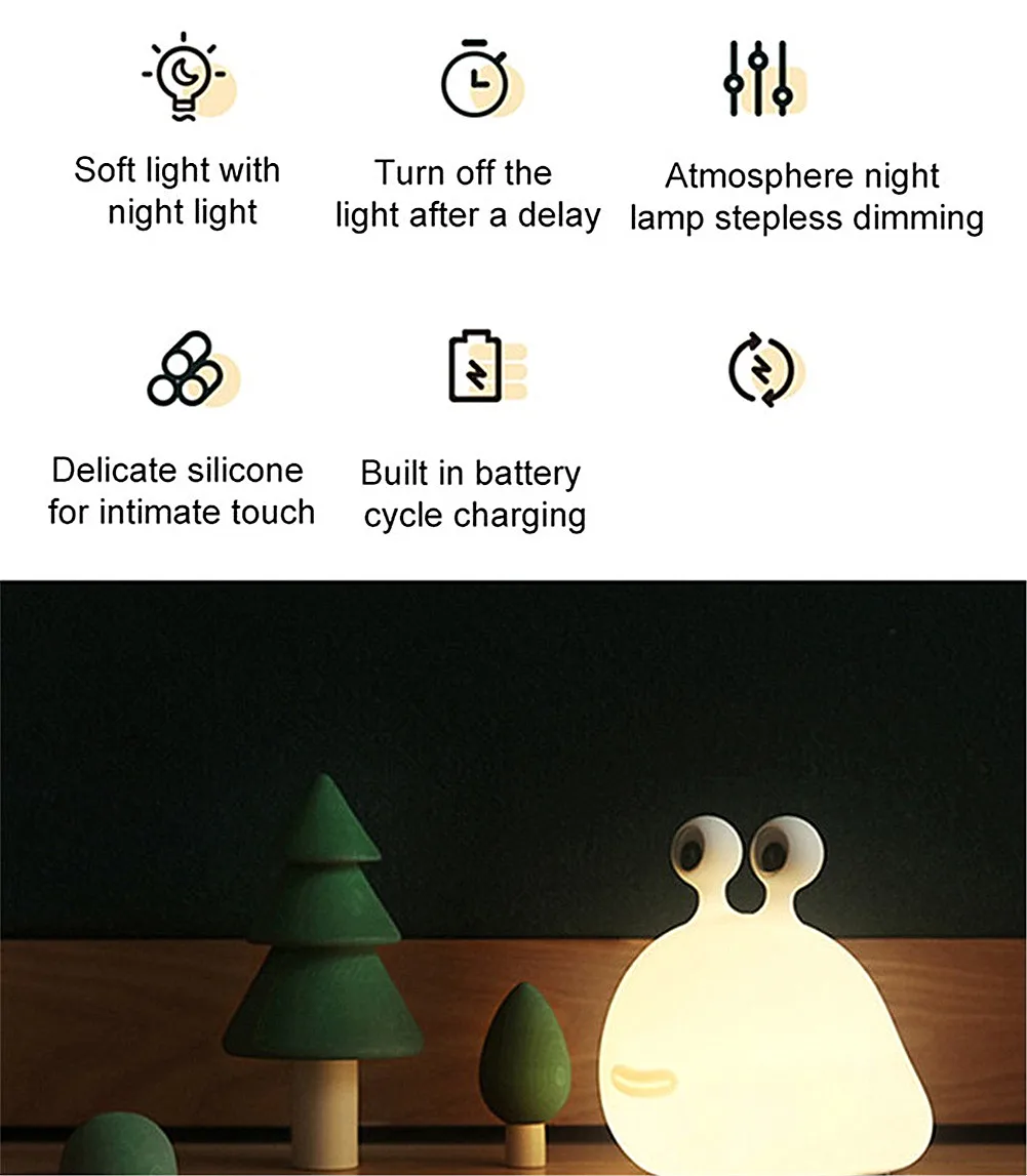 Перезаряжаемый ночной Светильник Slug силиконовая детская Ночная лампа с регулируемой яркостью сенсорный выключатель детская прикроватная Ночная лампа для спальни таймер