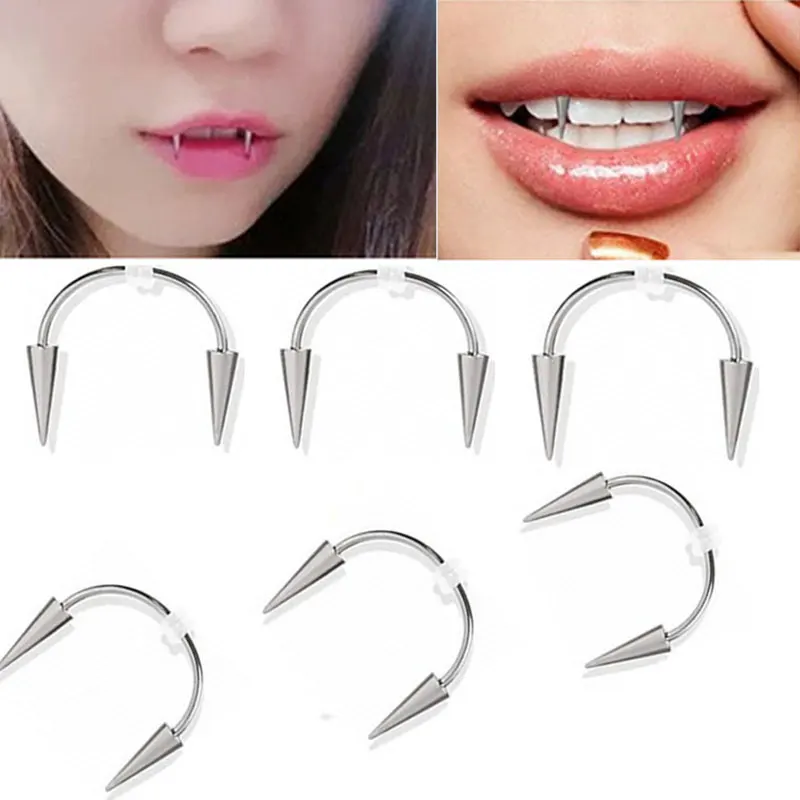 2 шт 16g Спайк губы губная серьга обруч кольцо Зубы вампира хирурги...