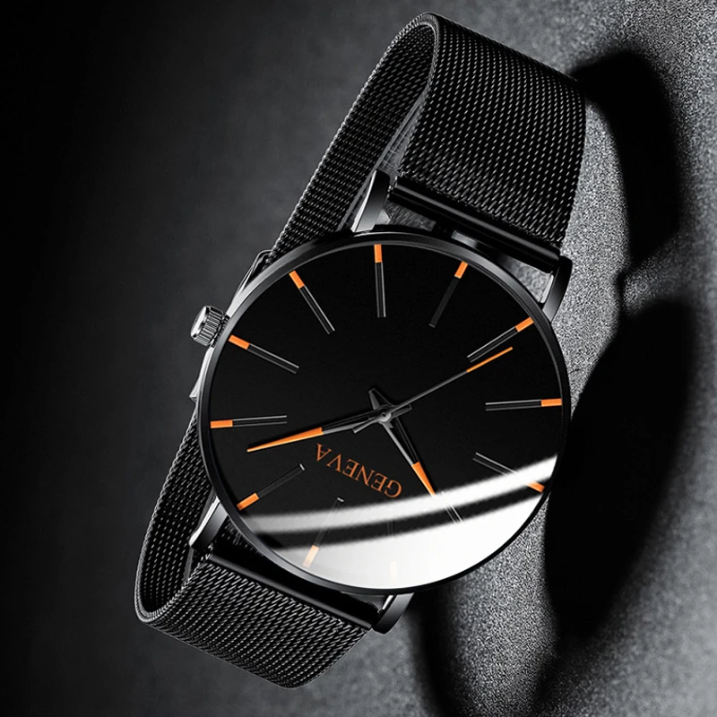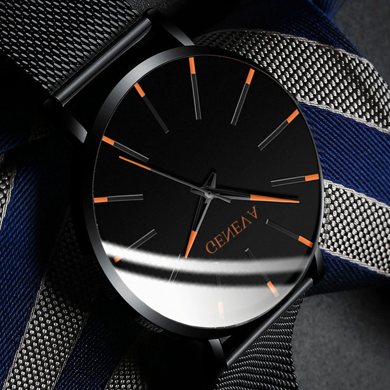 Часы наручные мужские ультратонкие, модные минималистичные простые деловые кварцевые с сетчатым ремешком из нержавеющей стали, 2021