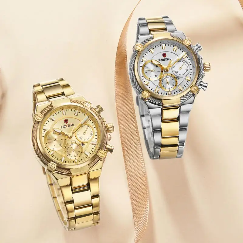 Kademan Роскошные Лидирующий бренд женские модельные часы водонепроницаемые кварцевые часы из нержавеющей стали...