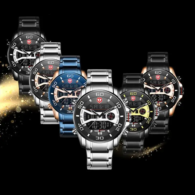 Kademan Лидирующий бренд мужские армейские кварцевые часы из нержавеющей стали спортивные часы мужские Led...