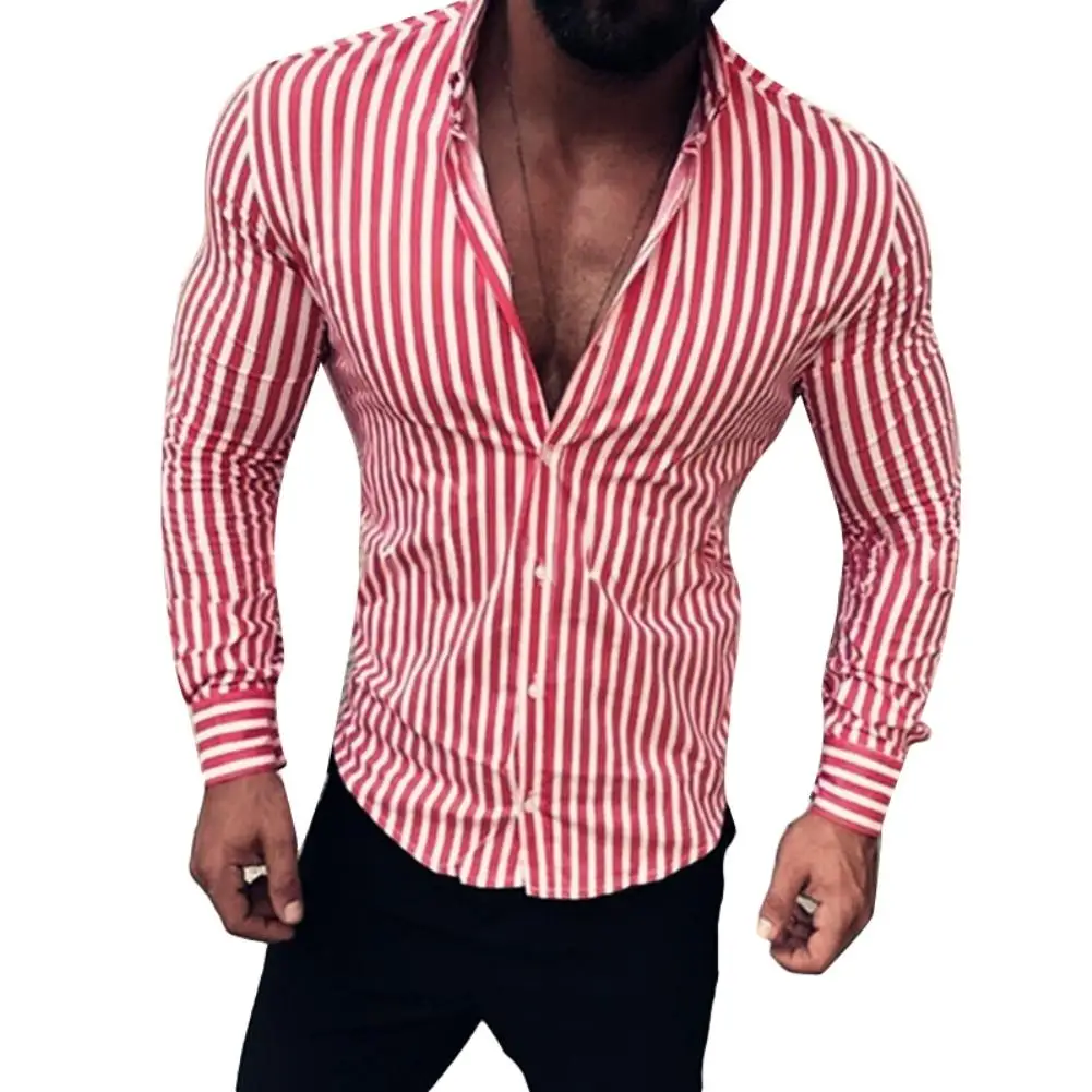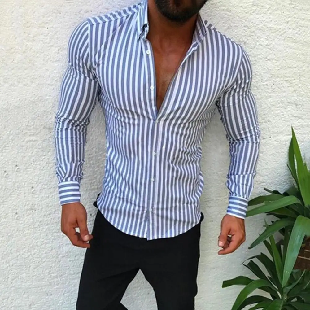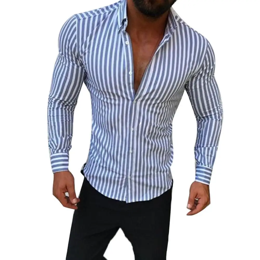Мужская рубашка на пуговицах, с отложным воротником, в полоску, повседневная, мужские рубашки с длинным рукавом