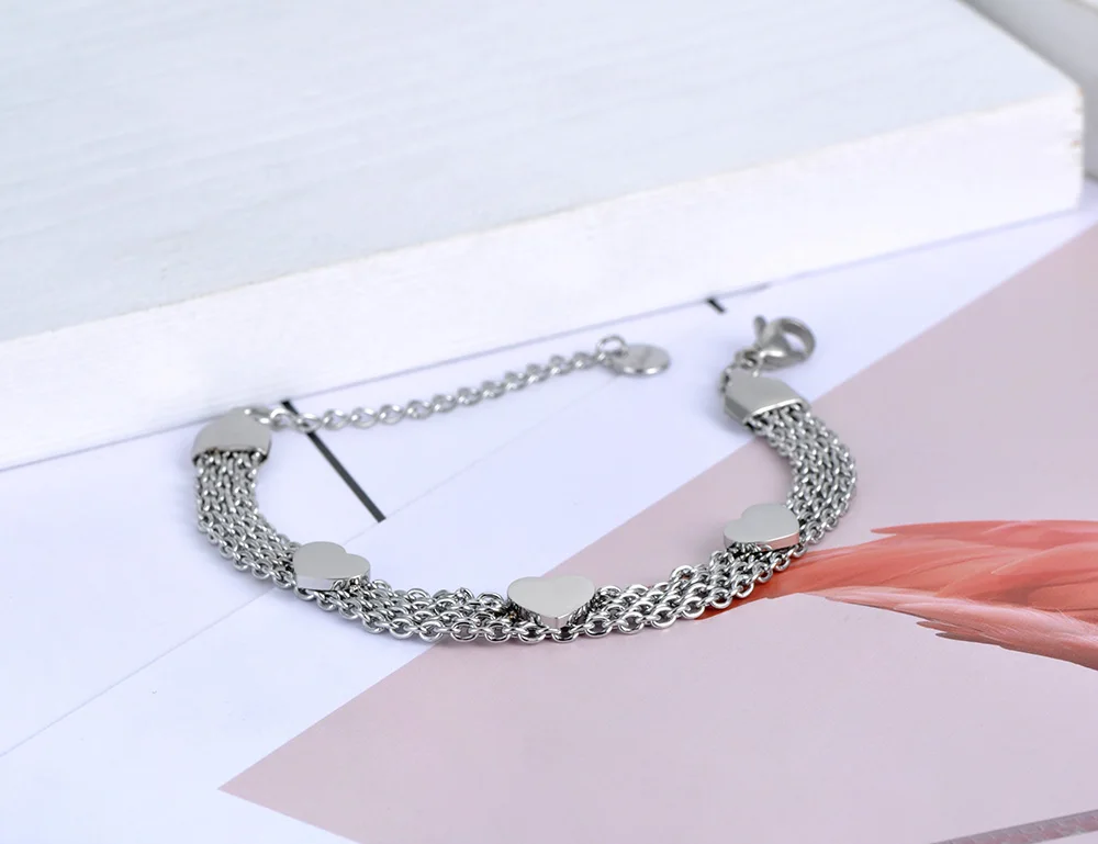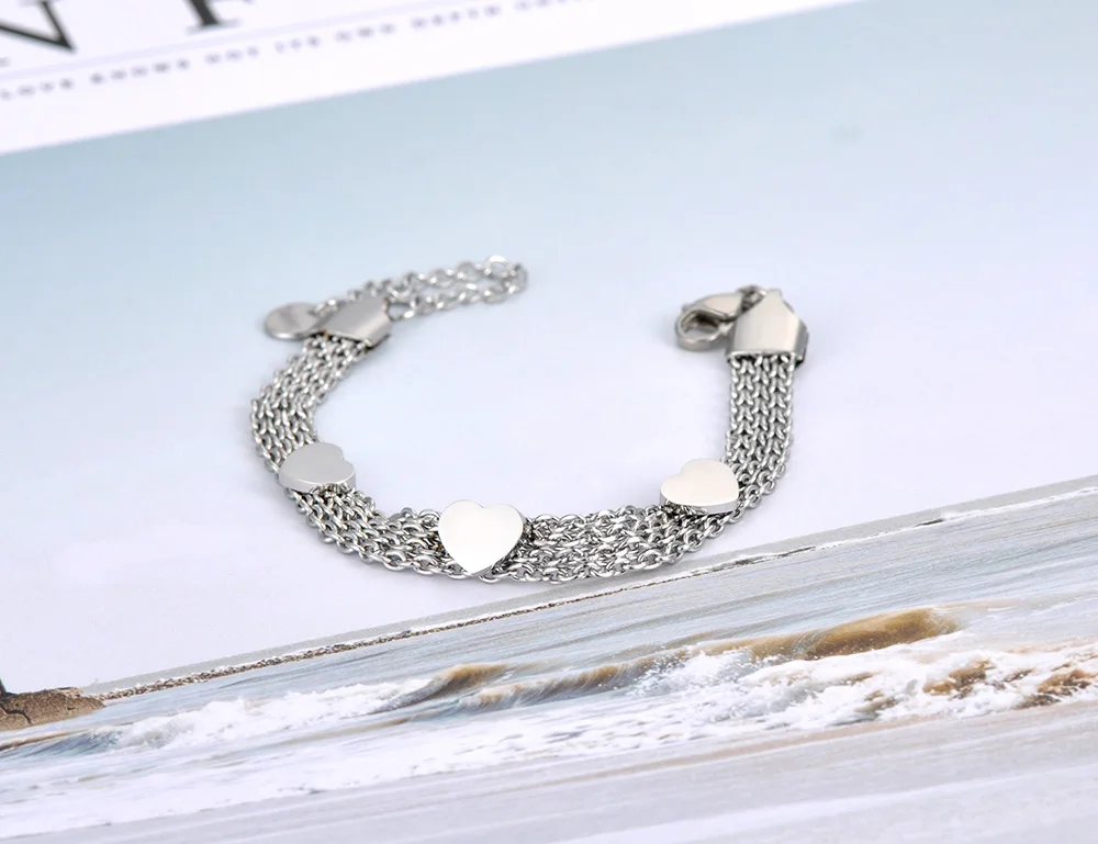 YiKLN Модный богемный многослойный браслет из нержавеющей стали 3 шт. сердца шарм Браслеты для женщин И девочек yb- цепочки И Звенья YB20095