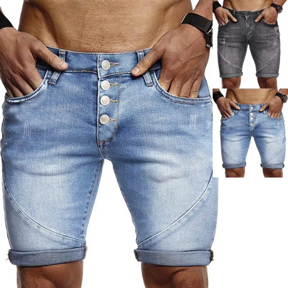 Мужские облегающие джинсовые шорты, хлопковые эластичные винтажные шорты из денима, серые и синие короткие брюки, Мужская одежда, Новинка лета 2020