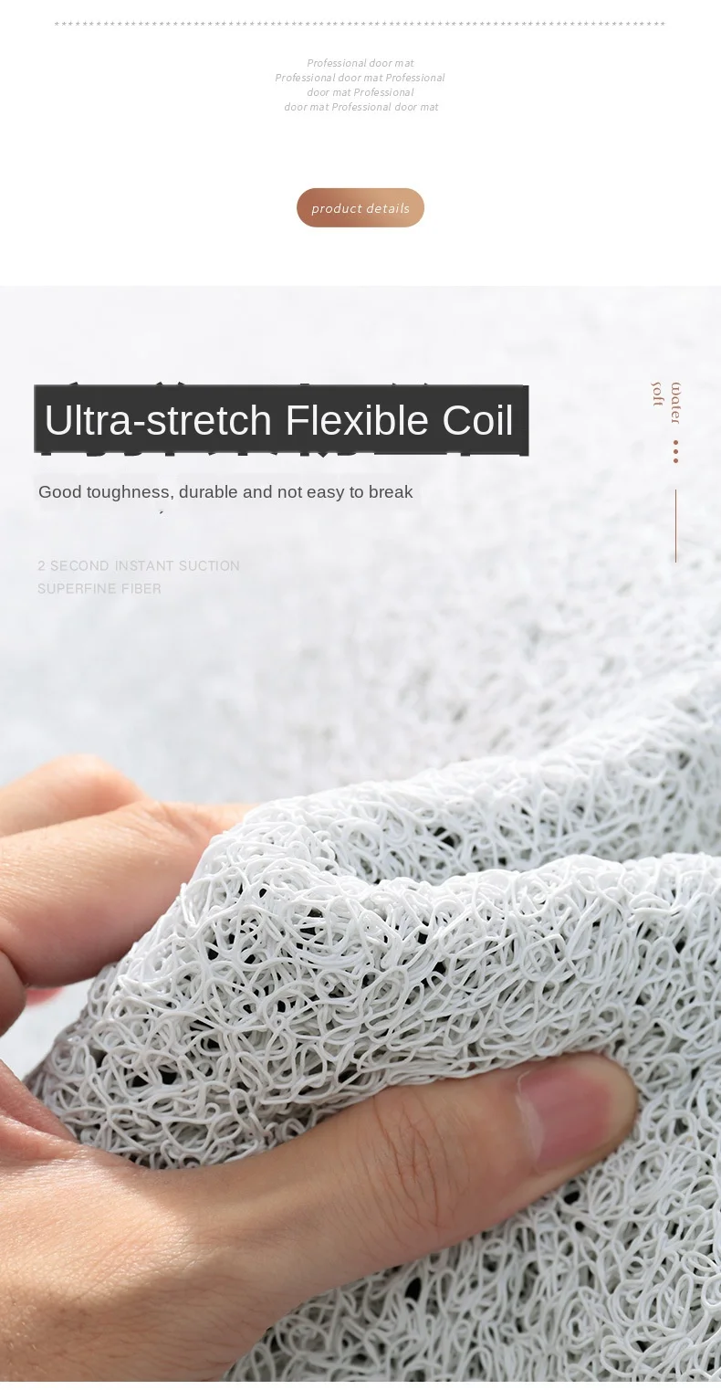 > Этот продукт может быть настроен на в соответствии с размером от входа, пожалуйста, свяжитесь с нами, если вам нужно сделать заказ. > Изготовлен из экологически чистого материала и безвреден для людей. > Нижняя часть выполнена из противоскользящего материала, который предотвращает скольжение коврика и защищает вашу безопасность, верхний материал может впитывать влагу из обуви, делая пол чистым и сухим, также удаляет пыль, грязь, снег и т. д. > Его можно свободно вырезать в любую форму, и он подходит для внутреннего и наружного подъезда, коридора, гостиной, спальни, ванной и т. д. > Толщина составляет около 8 мм, он может полностью лежать на полу и не мешать открытию и закрытию двери. > Когда он заполнен частицами грязи, вы можете просто очистить его с помощью пылесоса или использовать садовый шланг для краску, а затем дать ему полностью высохнуть на воздухе перед следующим использованием.