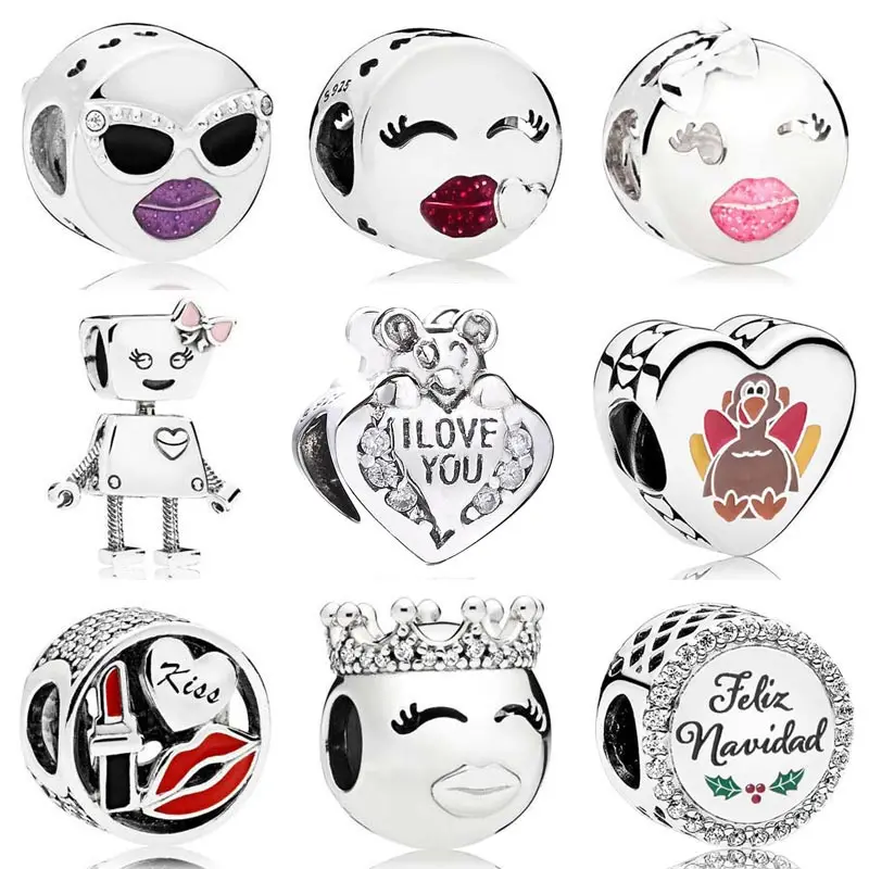 Bella Bot Feliz с утолщённой меховой опушкой, поцелуй Вишневый блеск принцессы смайлик гламурный поцелуй Подвески браслет шарма бусины из стерлингового серебра 925 ювелирные изделия