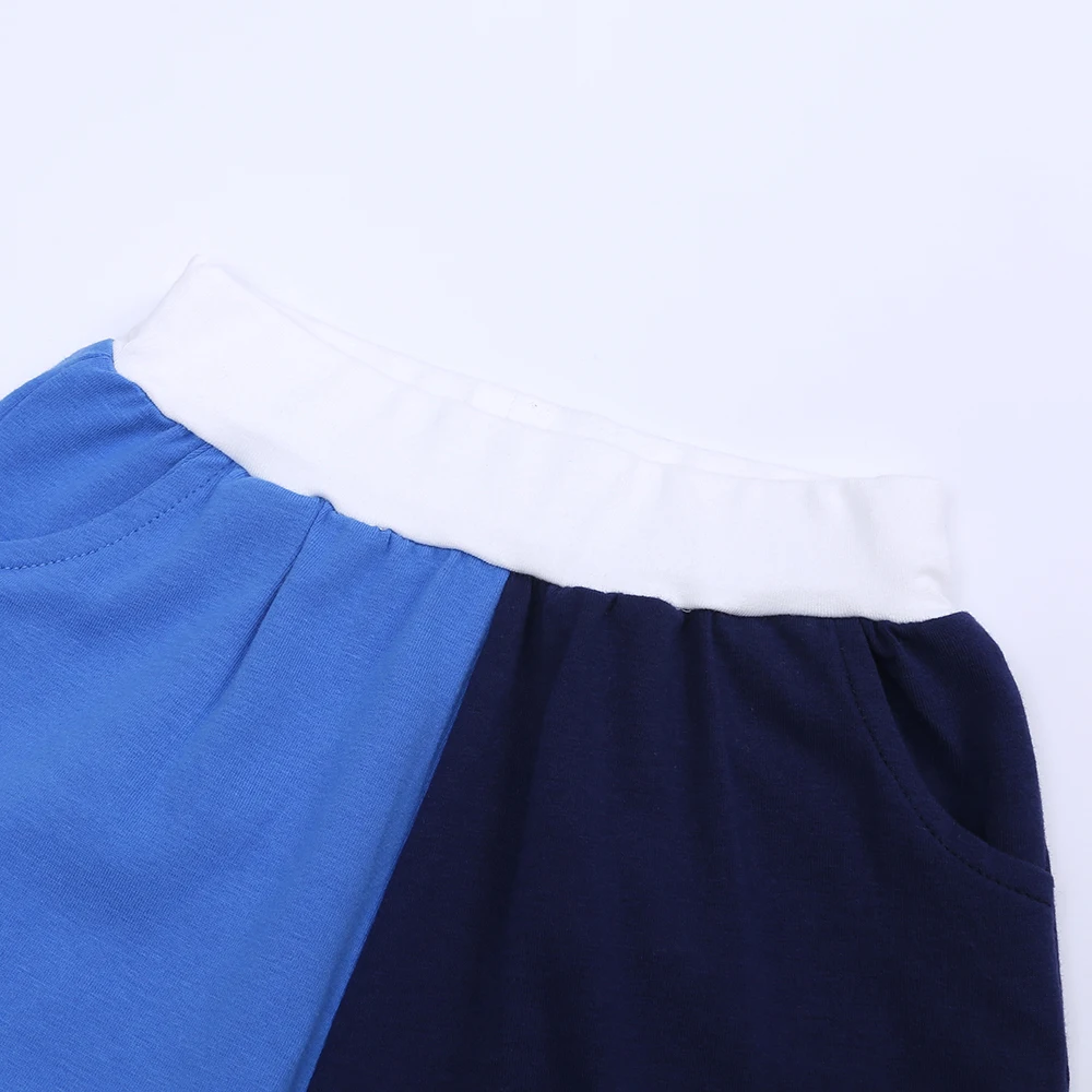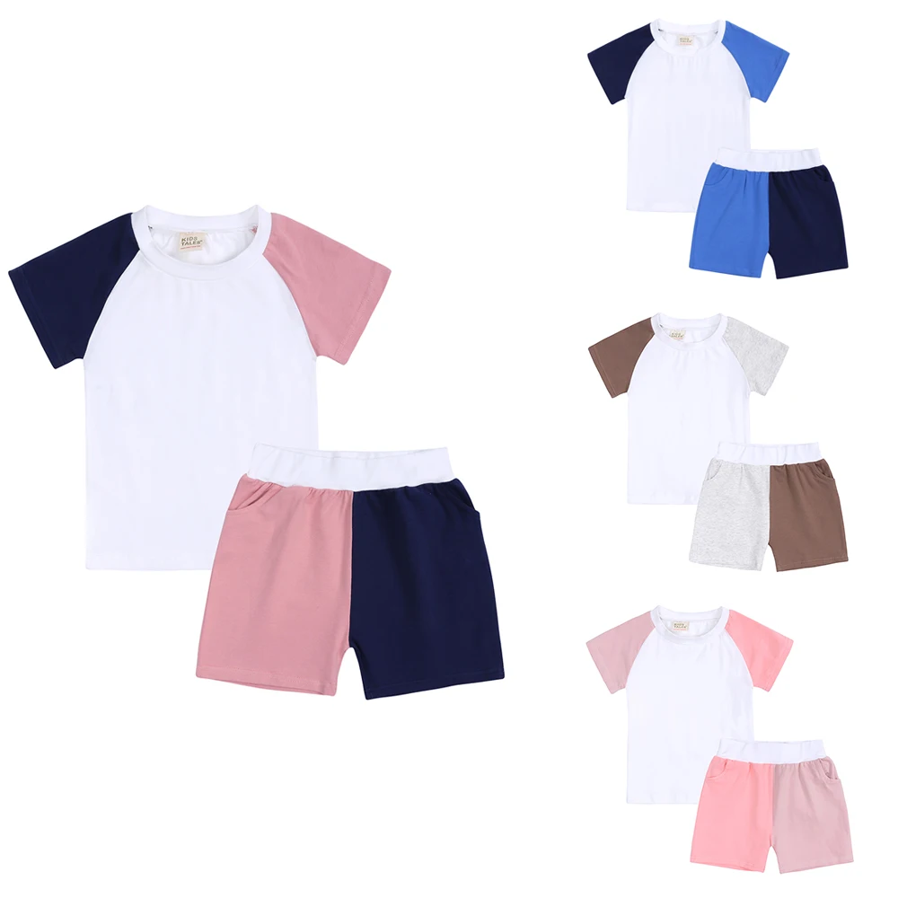 2021, летние шорты для мальчиков и девочек, комплекты для детей хлопковая Цвет контрастные Детские костюмы мода, футболка с короткими рукавами + шорты комплект одежды из 2 предметов, спортивные комплекты