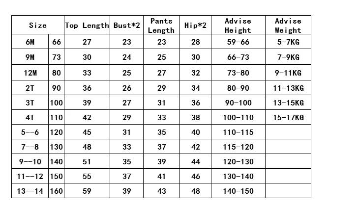 Примечание:Дети одного и того же возраста могут иметь разный вес и рост, пожалуйста, внимательно проверьте таблицу размеров перед покупкой. Толстый ребенок должен выбрать больший размер. Если у вас есть какие-либо вопросы, пожалуйста, свяжитесь с нами. Спасибо!