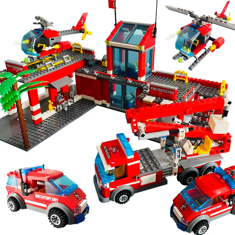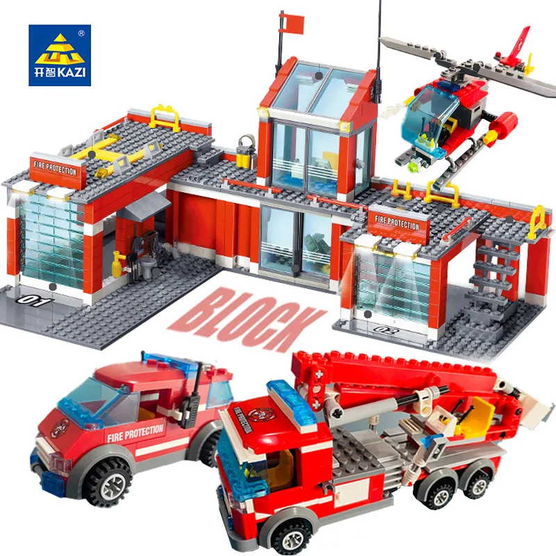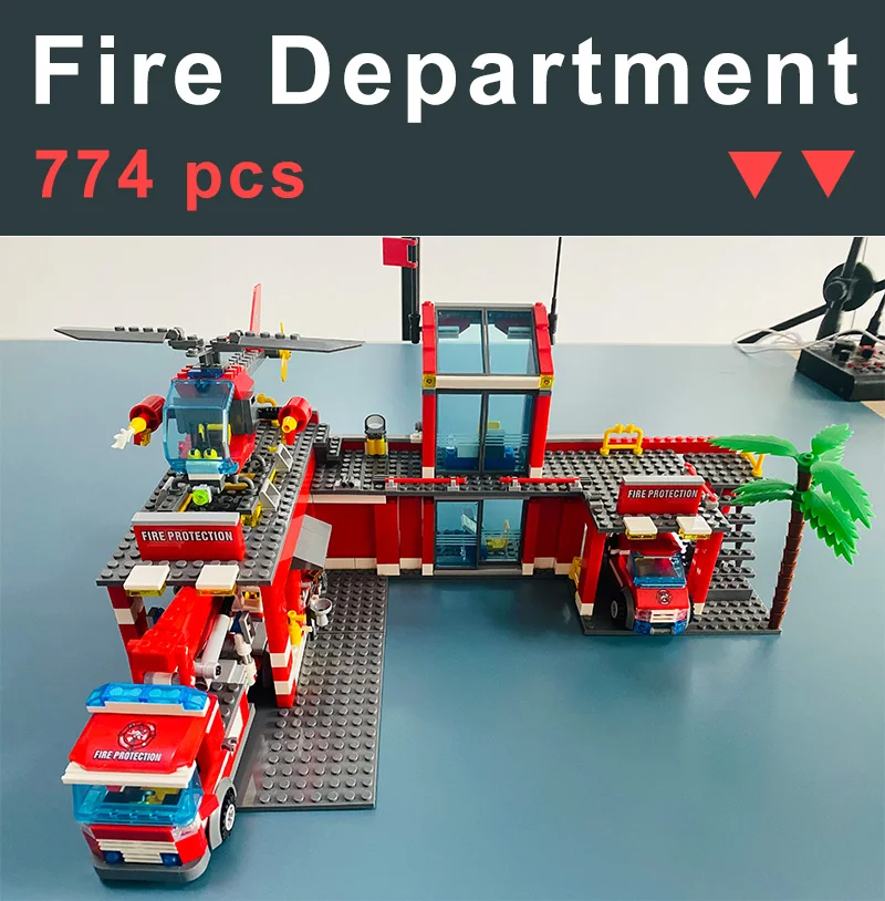 774 шт. город противопожарная станция строительные блоки самолет грузовых автомобилей пожарный цифры блоки, Детские кубики, развивающие игрушки для детей, носки для мальчиков