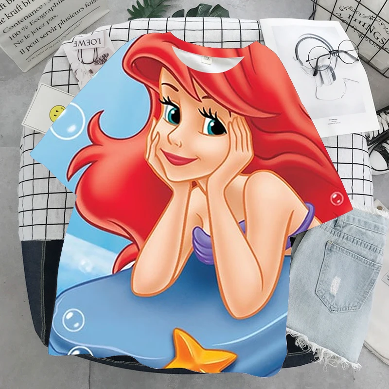 Женская футболка с 3D-принтом Русалочки Ариэль, Повседневная летняя...
