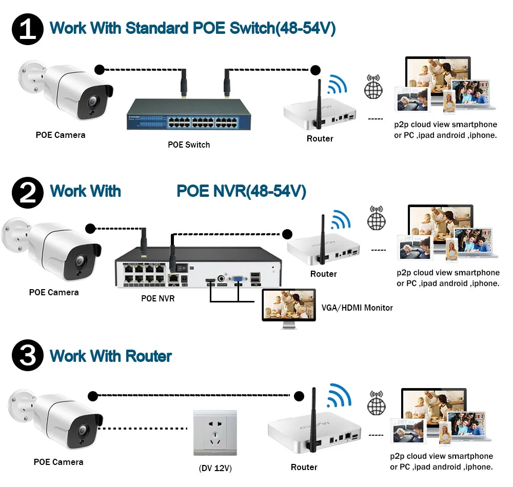 Рабочая мощность: 12 В постоянного тока/POE 48 в