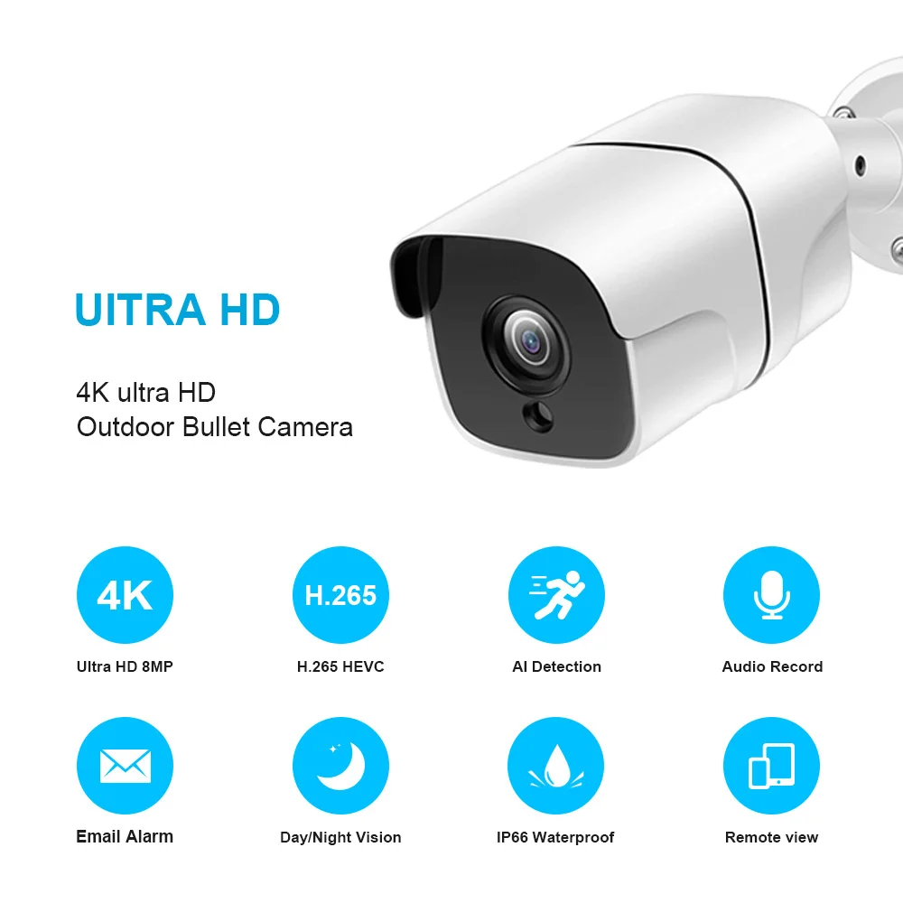 4K IP камера H.265 8MP камера 3840X2160 аудио наружное Обнаружение движения CCTV видео безопасности камеры наблюдения POE