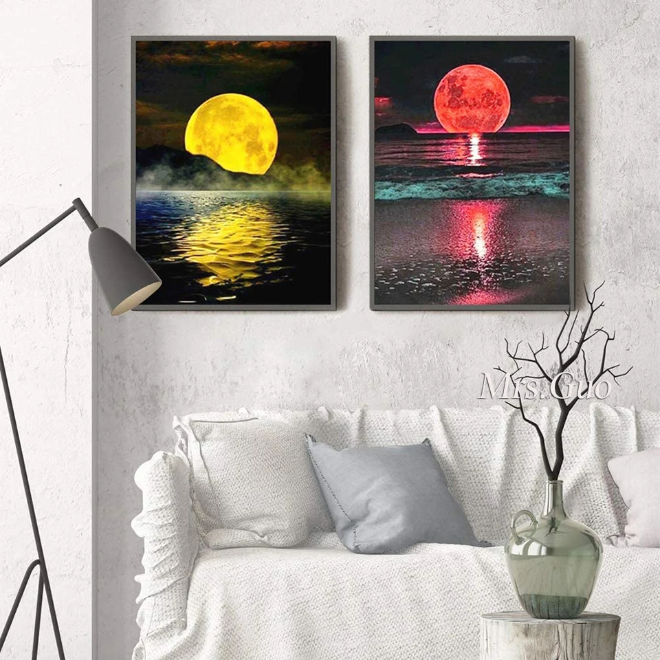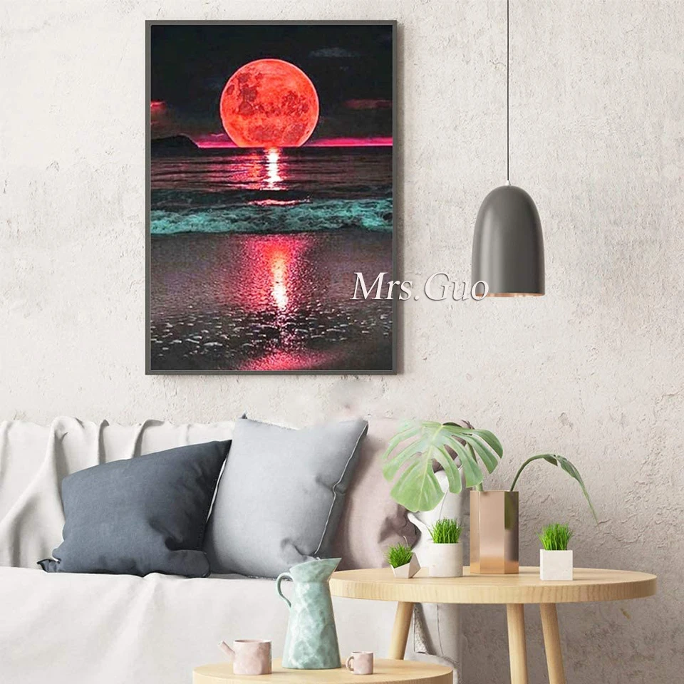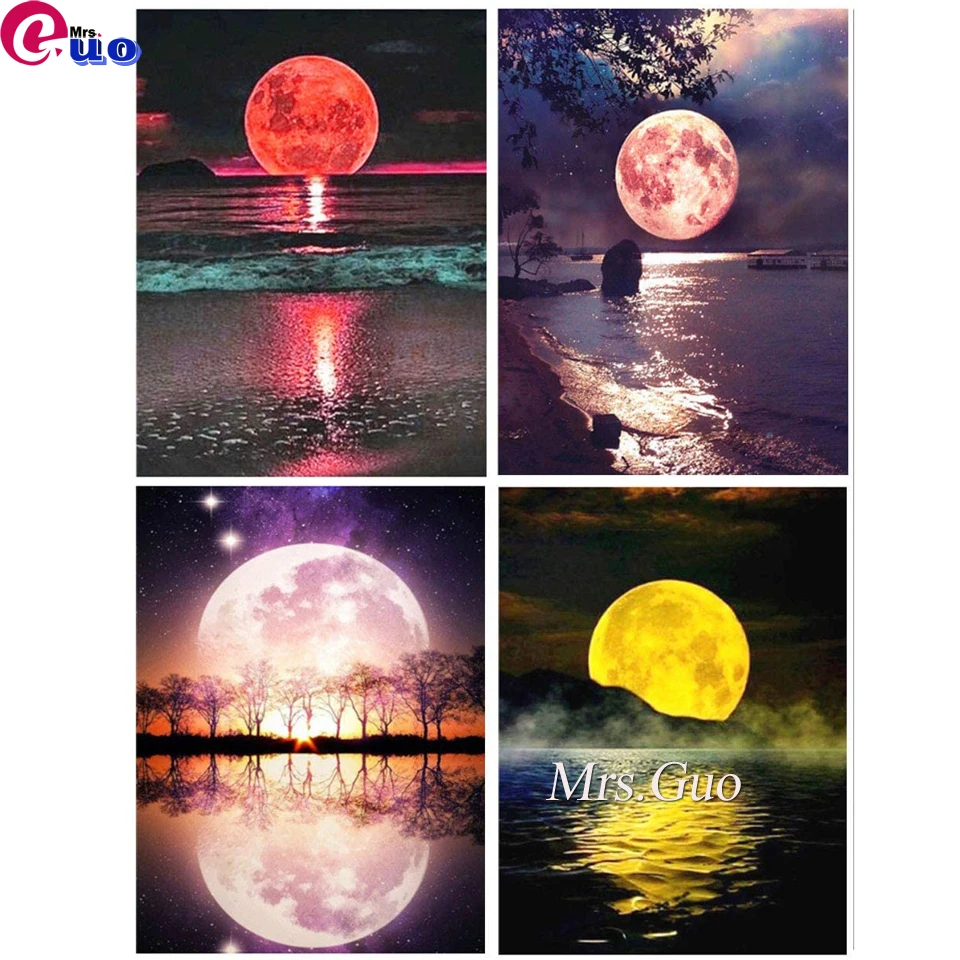 Алмазная живопись 5D сделай сам пейзаж Луна Дерево Стразы искусство...