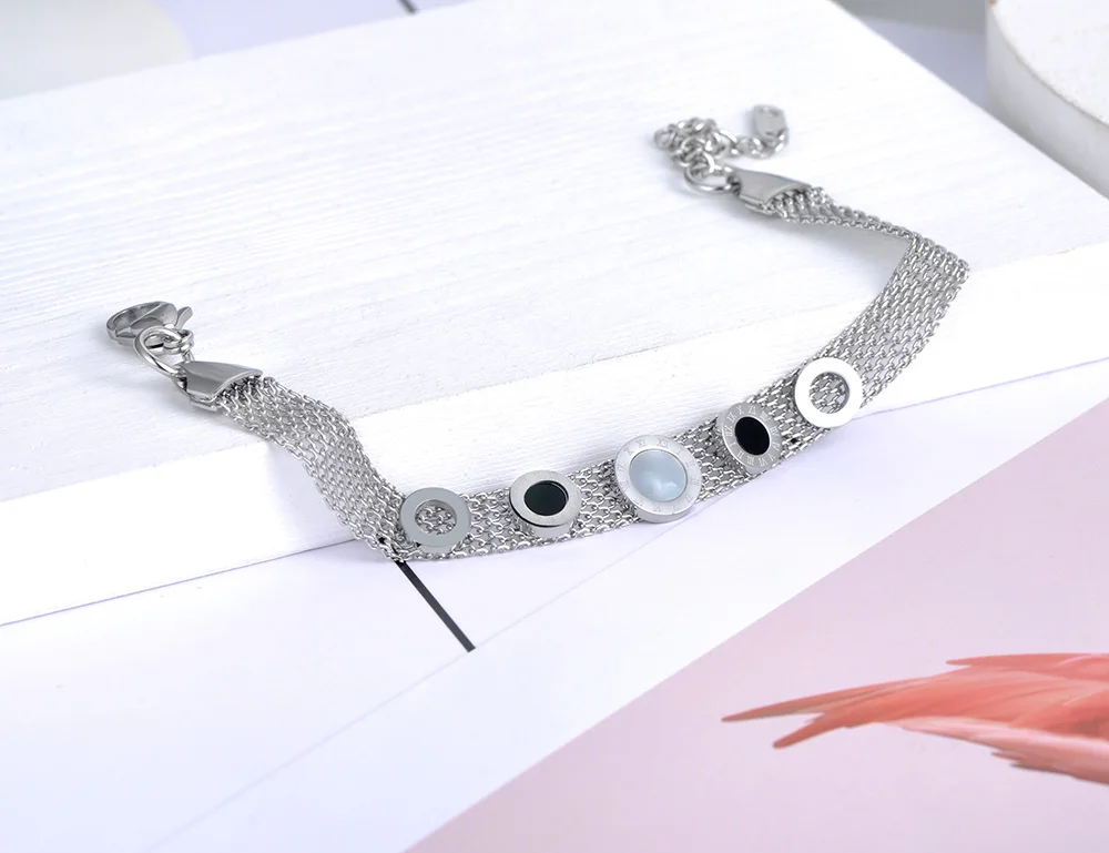 Модные женские браслеты JeeMango из нержавеющей стали с акриловыми и ракушками с римскими цифрами, ювелирные изделия в богемном стиле JB20093