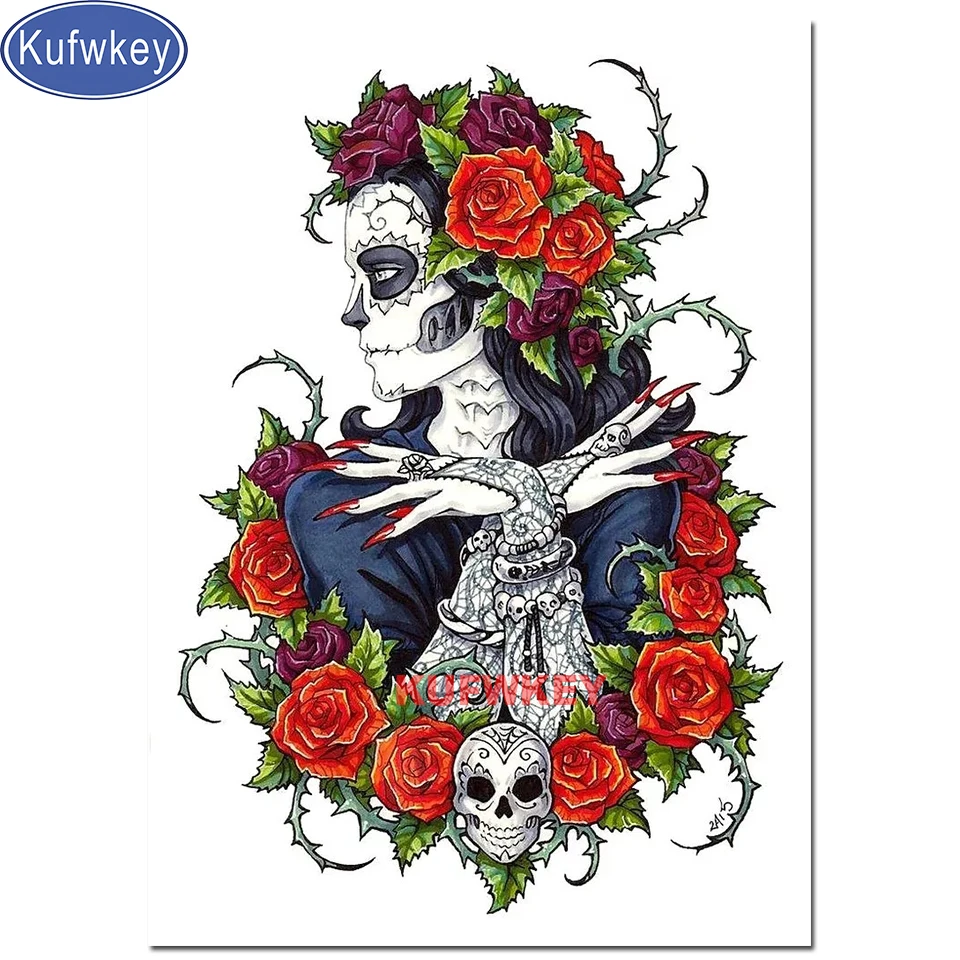 Череп с розами для девочек татуировки Алмазная вышивка полная круглая квадратная Алмазная картина алмазной мозаики картины властная женские домашние искусство,
