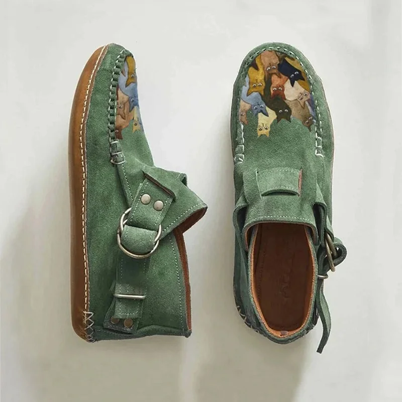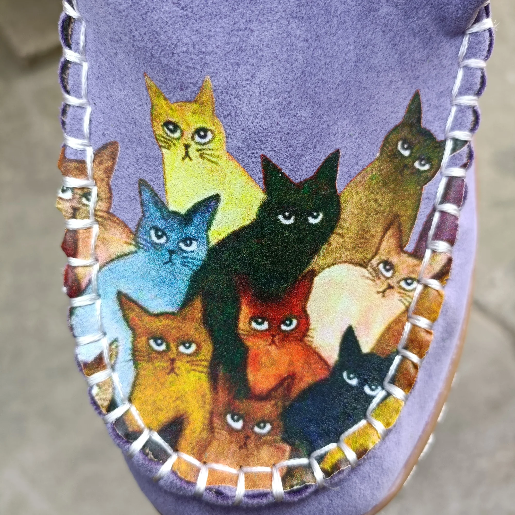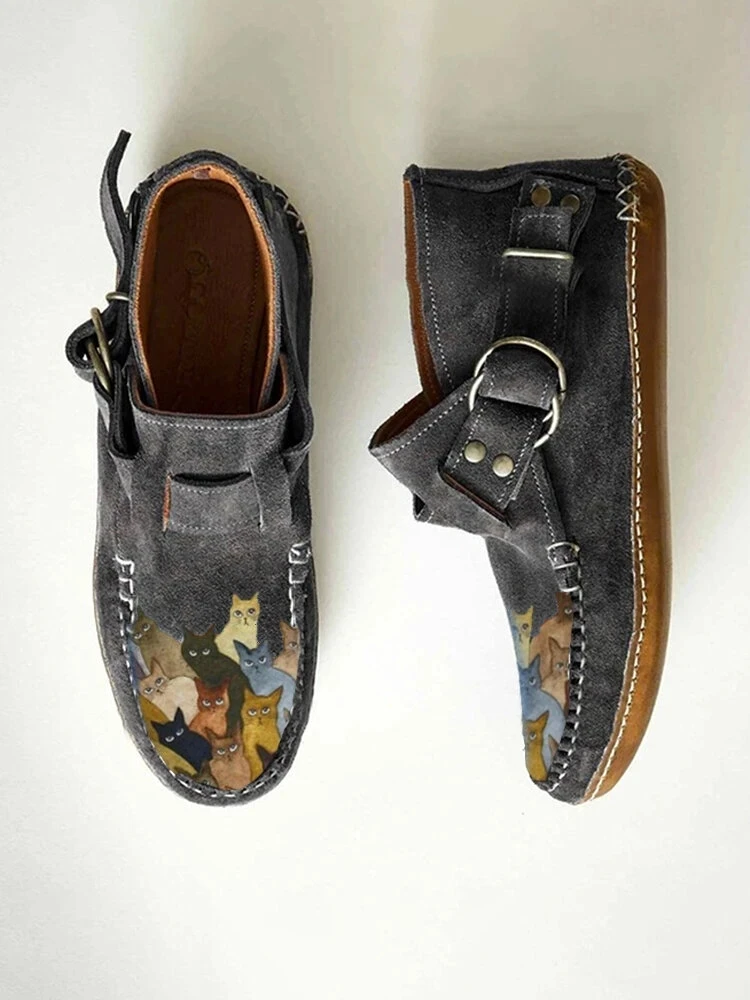 Женские кожаные ботильоны на плоской подошве, с принтом кота из мул...