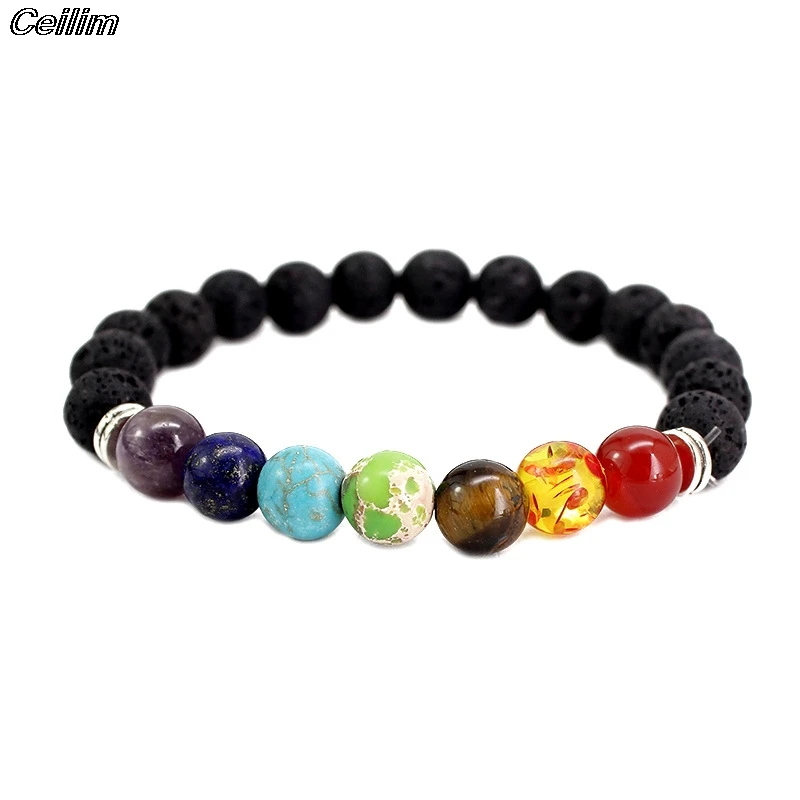 Браслет из натурального лавового камня, Шарм в виде чакры, лечебный баланс, 8 мм, тигровый глаз, браслет для молитвы тибетского Будды для женщин и мужчин