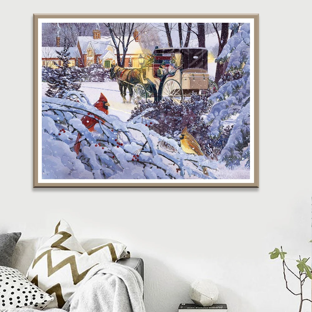 Алмазная картина 5D "сделай сам", Снежная сцена, набор инструментов для вышивки крестиком, украшение дома, картина, полная вышивка, ручная работа, увлечение мозаикой