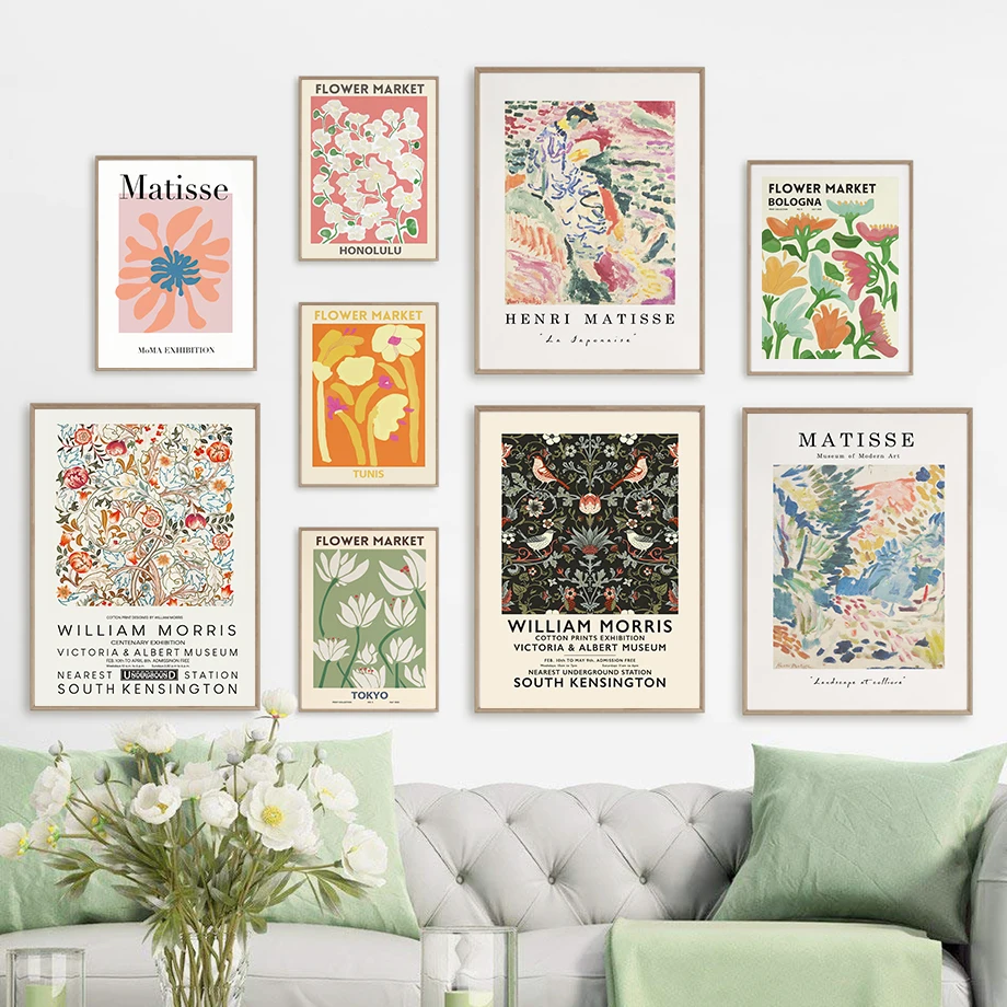 Минималистичная Настенная картина с изображением цветов и рынков птиц, постеры и принты на холсте в скандинавском стиле, абстрактные настенные картины для декора гостиной