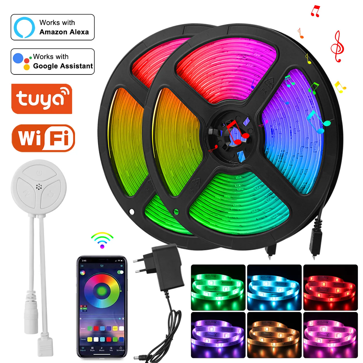 Светодиодные ленты светильник Смарт Tuya WI-FI работать с Alexa Google Assistant голосовое Управление RGB светодиодный светильник s полосы 12V 5050 гибкая лента