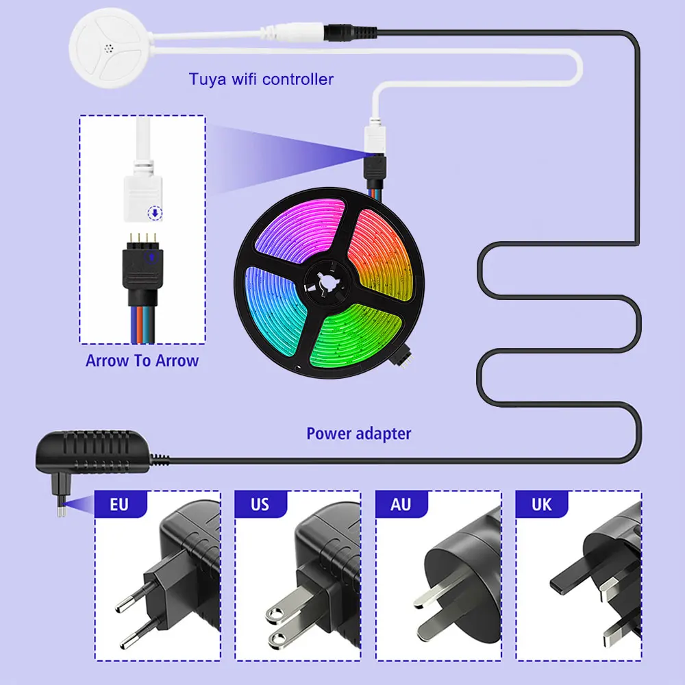 Загрузка приложения: Tuya SmartПоддержка мобильных устройств: Android/IOSФункция: Голосовое управление, дистанционное управление с помощью приложения, регулировка яркости, Совместимость с Alexa Echo Google Home Assistant.Особенности:Пульт дистанционного управления, даже если вы не дома, вы можете управлять смарт-светодиодной лентой вкл/выкл с помощью телефона через приложение Tuya. Легко установить расписание для вашей умной светодиодной ленты. Подгоняйте свой домашний светильник, например, устанавливайте светильник s, чтобы включаться в сумерках или выключаться на рассвете. Вы можете создать группу для всех ваших умных светодиодных лент и управлять ими с помощью только одной команды.Голосовое управление вашей умной светодиодной полосой через ваш голос с помощью Google Assistant. Просто дайте голосовую команду, чтобы включить/выключить или затемнить/осветить ваш светильник, даже переключите светильник на определенный цвет, как вам нужно. Концентратор не требуется и прост в установке. Нет необходимости подписки.Миллионы цветов ChangingExpress себя и сделать ваше пространство более креативным с Умной светодиодной полосой. Выберите из 16 миллионов цветов и оттенков белого, чтобы мгновенно изменить внешний вид и атмосферу вашей комнаты. Управляйте удаленно с помощью вашего умного устройства, создавайте индивидуальные сцены и раскрывайте свое творчество. Встретить ваши вечерние, читать, светильник для отдыха.Энергосбережение и широкое использование с технологией светодиодный, экономит заряд электроэнергии с новейшей технологией освещения. Эту лампу можно использовать в любом месте, где вам нужен красочный светильник, такой как Домашний Светильник для помещений, отель, конференц-зал, музей, рестораны, бар, кафе, праздник