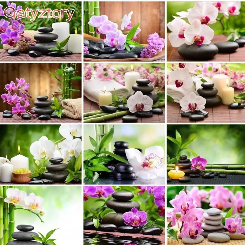 GATYZTORY DIY картины по номерам, наборы цветов, живопись по номерам, цветок, рисование на холсте, ручная роспись, искусство, домашний декор