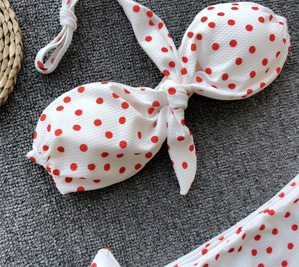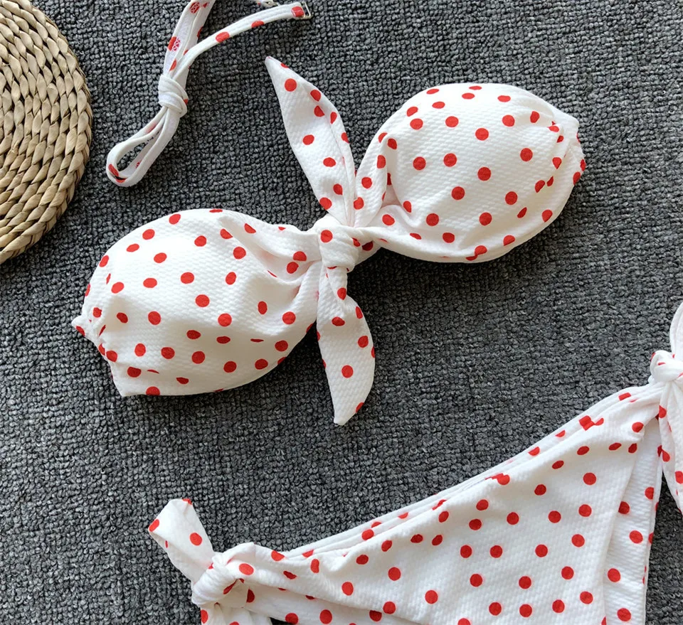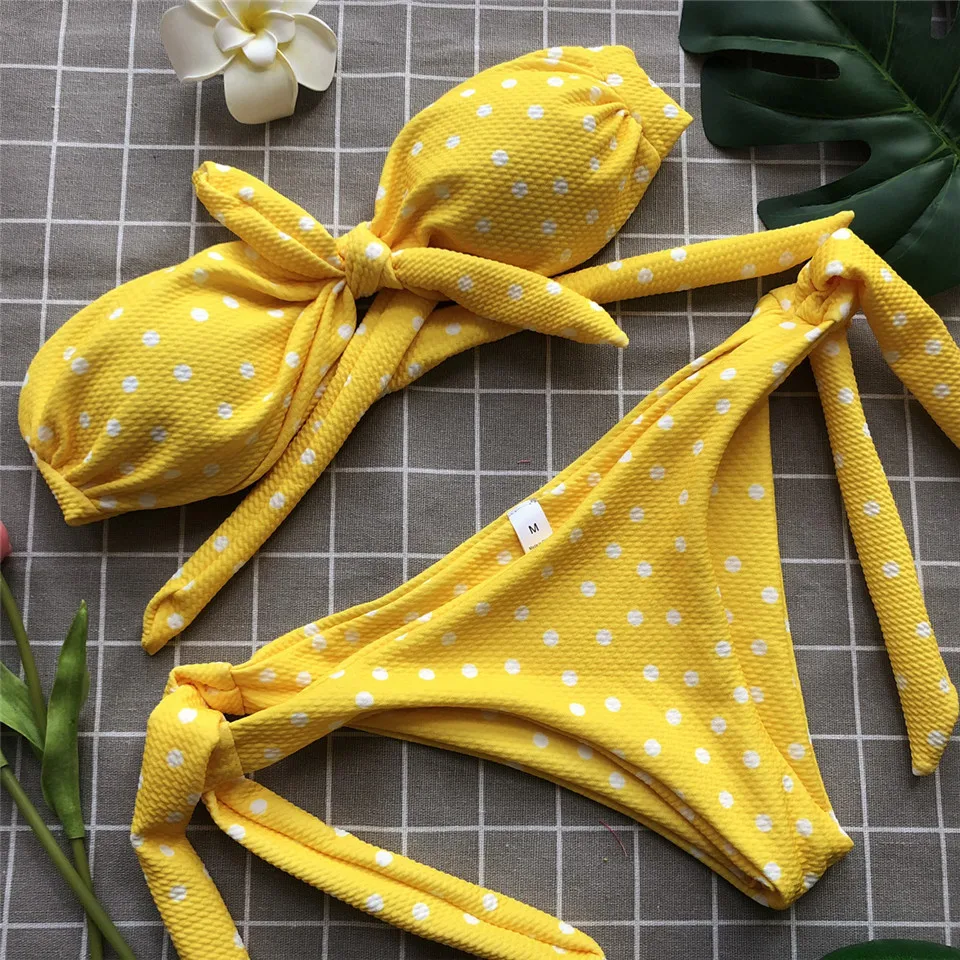Бикини бандо, сексуальный купальник в горошек, женский купальник пуш-ап, летние купальные костюмы с подкладкой, купальник с кисточками и открытой спиной, бикини с высокой талией