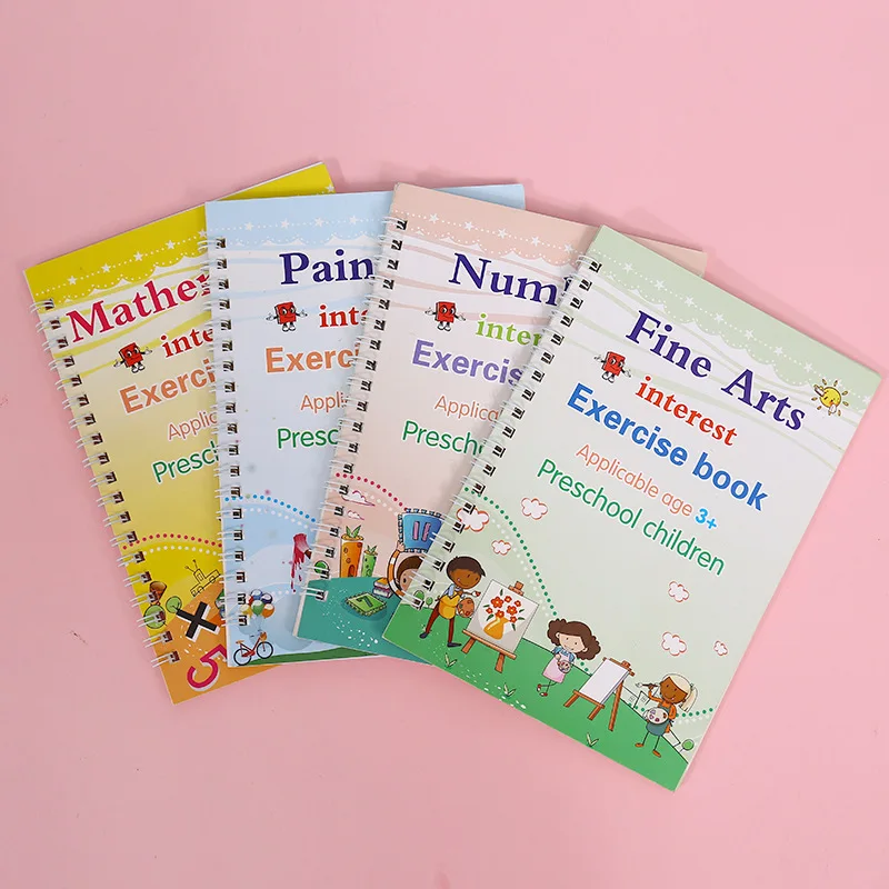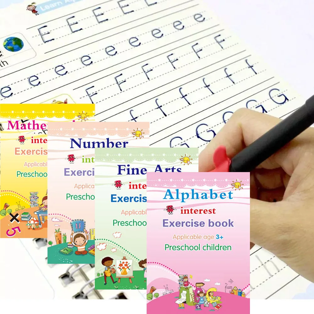 Волшебные книжки для детей, 4 книги, многоразовые, для 3d-каллиграфии, с цифрами на английском языке, Волшебная книга тетрадь для практики