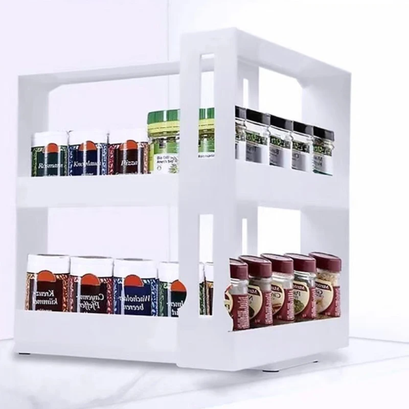 2-х Уровневый вращающийся шкаф для хранения, многофункциональная коробка для пищевых продуктов, коробка для хранения приправ, вращающаяся стойка для приправ, кухонные инструменты