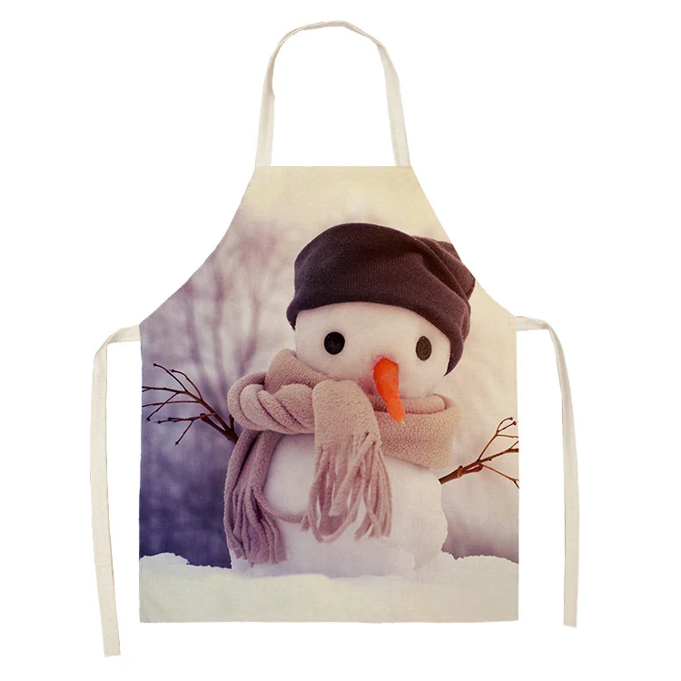 Фартук для кухни с рисунком снеговика на новый год 2022, фартук из хлопка и льна, Рождественское украшение 53*65 см