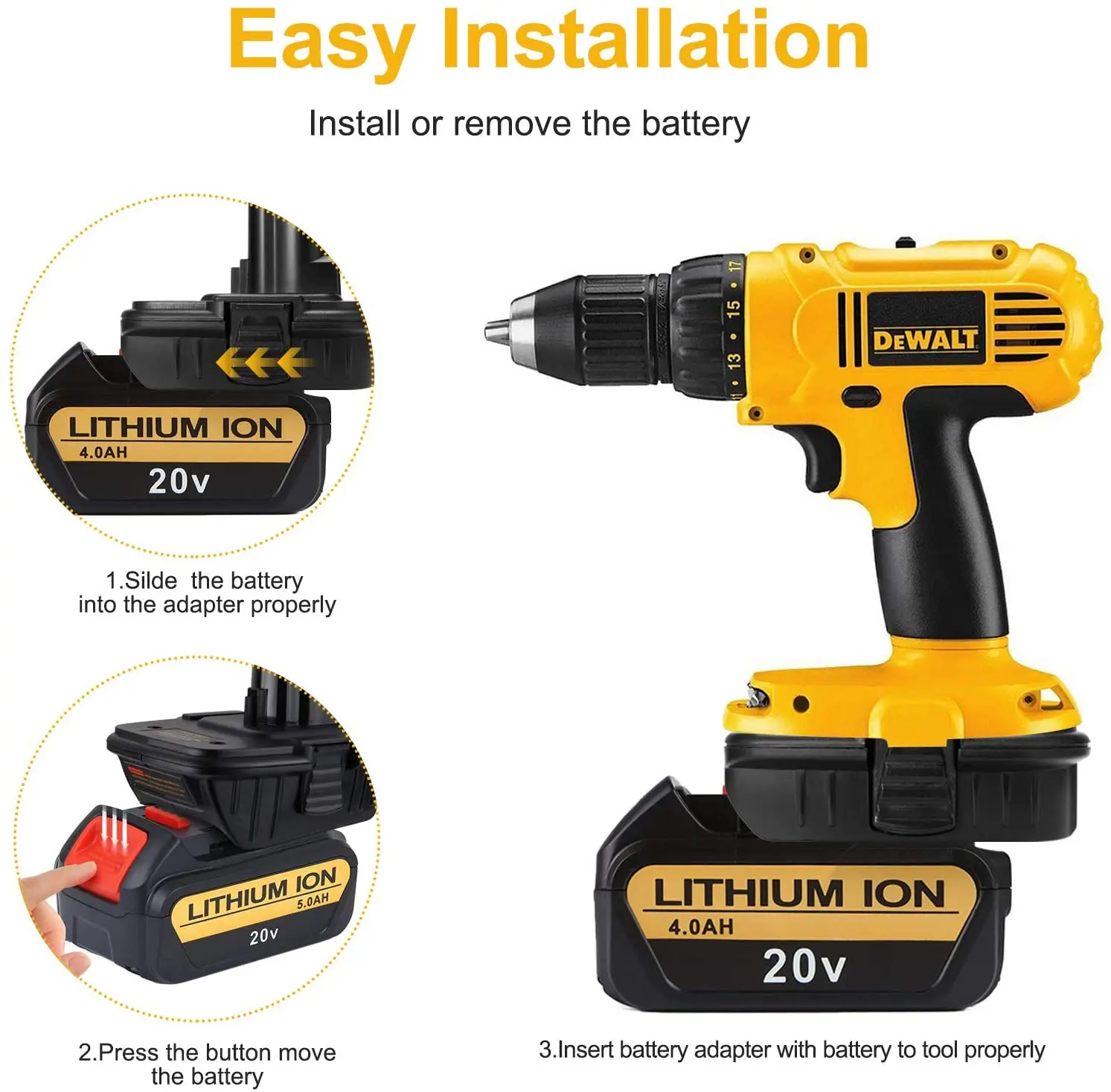 Особенности:1. Напряжение: максимальное Начальное напряжение батареи (без измерения рабочей нагрузки) составляет 20 вольт, а Номинальное напряжение-18 вольт.2. Замените батарею: Включите батарею макс. 20 в и замените батарею.3. Usb-порт: usb-порт для зарядки мобильных телефонов и устройств питания. Используйте usb, не включая usb-кабель.4. Применимые предметы: большинство DEWALT батареи и 18V аккумуляторов и батареек заменяются в большинстве батареек типа для Милуоки.5. Широкий спектр применения: подходит для любого зарядного устройства. Если вам нужно зарядить аккумулятор для Вашего электроинструмента, используйте оригинальное зарядное устройство.Описание:1. Адаптер позволяет использовать продаваемую батарею на инструментах 18 в, что позволяет вам наслаждаться преимуществами продления срока службы литий-ионного аккумулятора.2. Для электроинструмента RYOBI 18V. Usb-порт адаптера может использоваться для зарядки устройств, таких как мобильные телефоны.Спецификация:Модель: DM18RLМатериал: пластикЦвет: черныйПосылка включает в себя:1 х Аккумуляторный преобразователь (без аккумулятора)