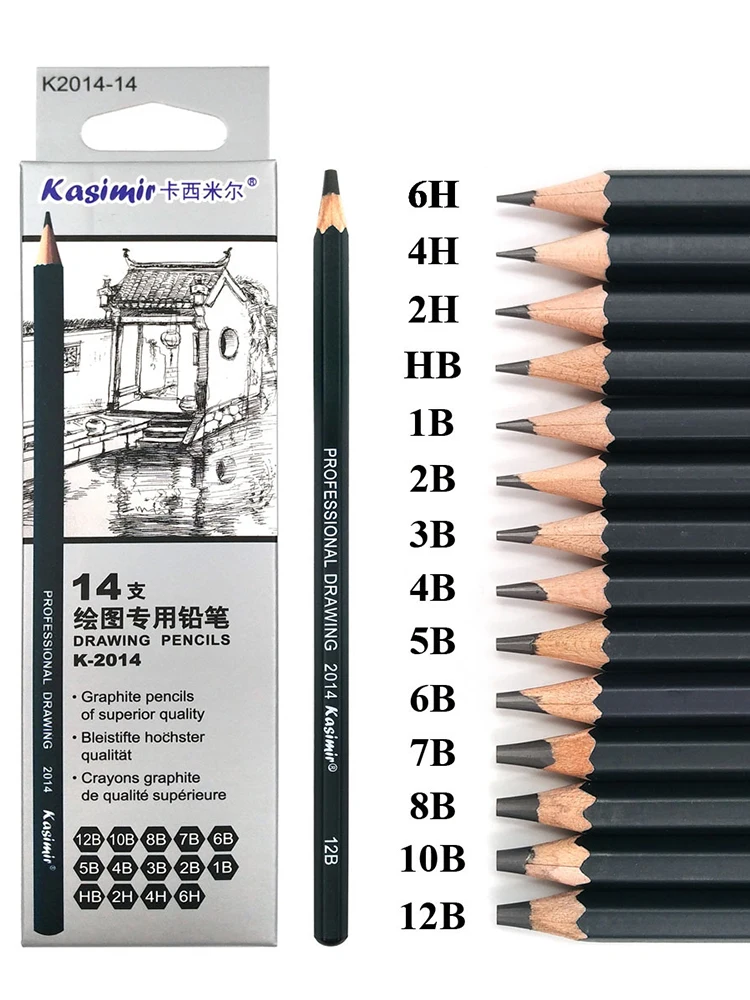 Набор профессиональных карандаши для рисования KASIMIR, 14 товары для рукоделия, 6H, 4H, 2H, HB, B, 2B, 3B, 4B, 5B, 6B, 7B, 8B, 10B, 12B