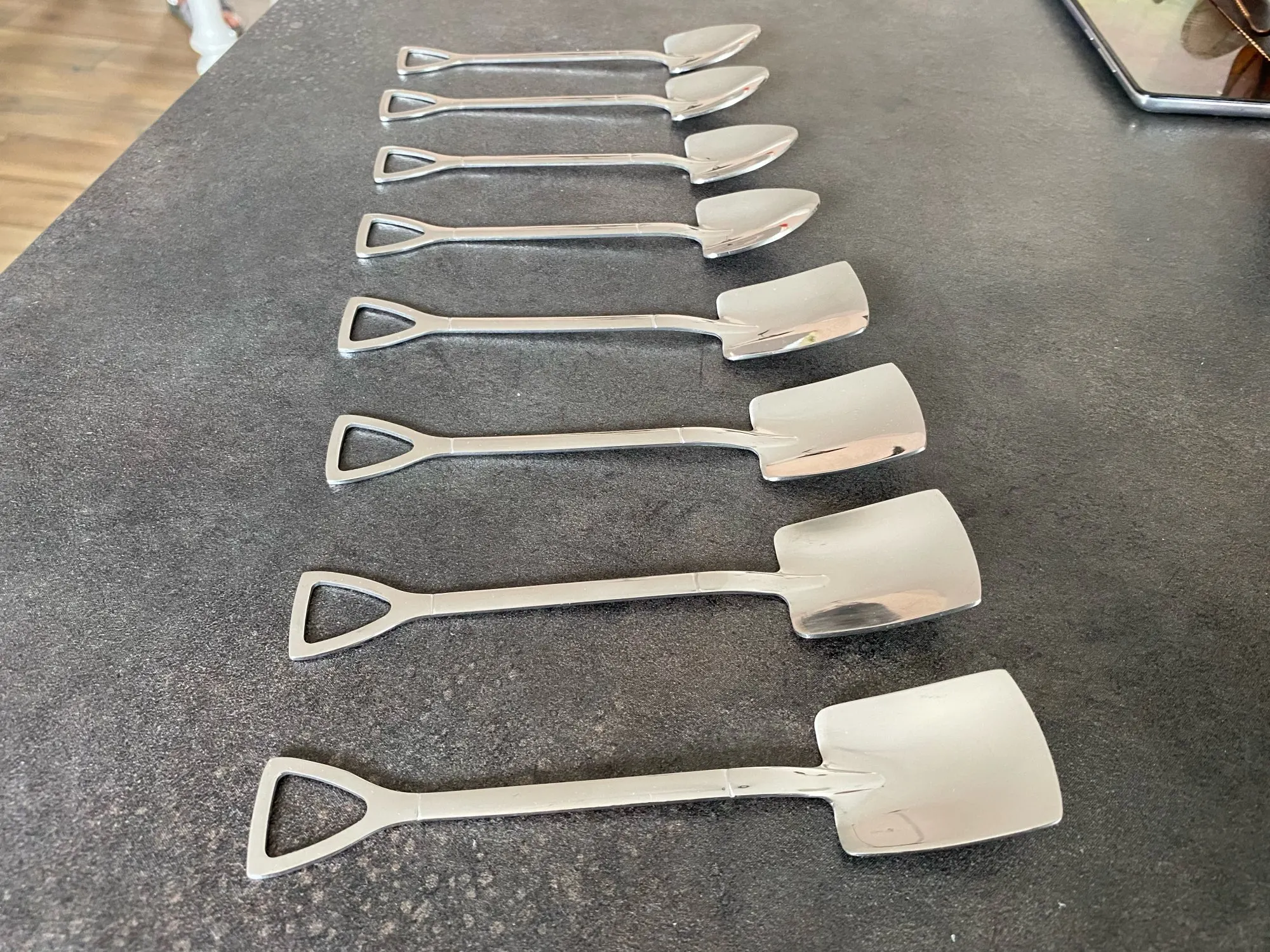 Интересные ложечки. Они больше, чем я представляла. Для десертов великоваты, будут как ложечки в сахарницу и в другие специи. Очень быстрая доставка, получила 2 недели после заказа. Товар и продавца рекомендую.