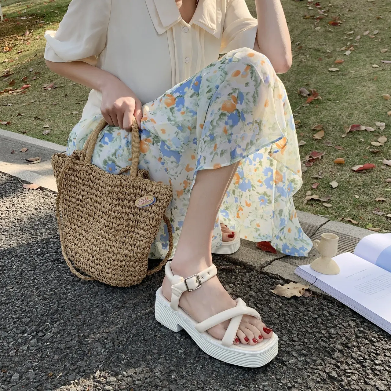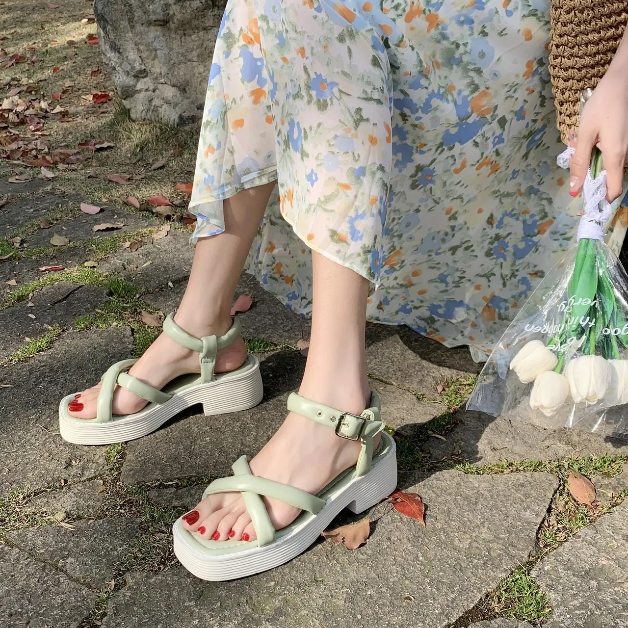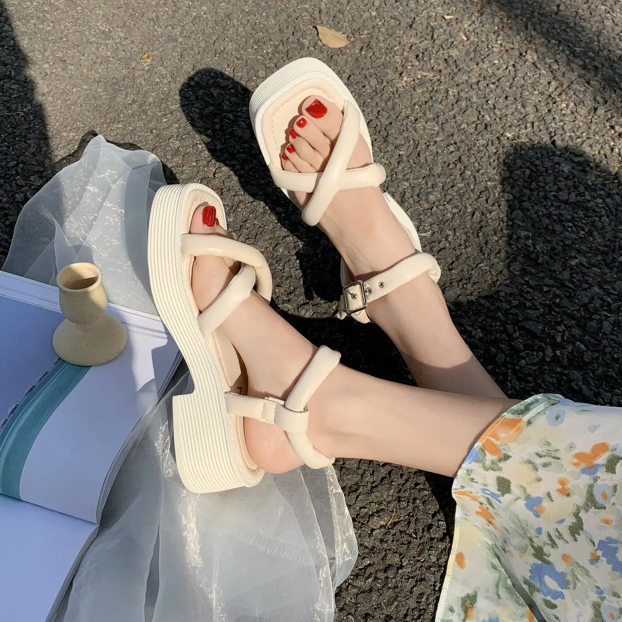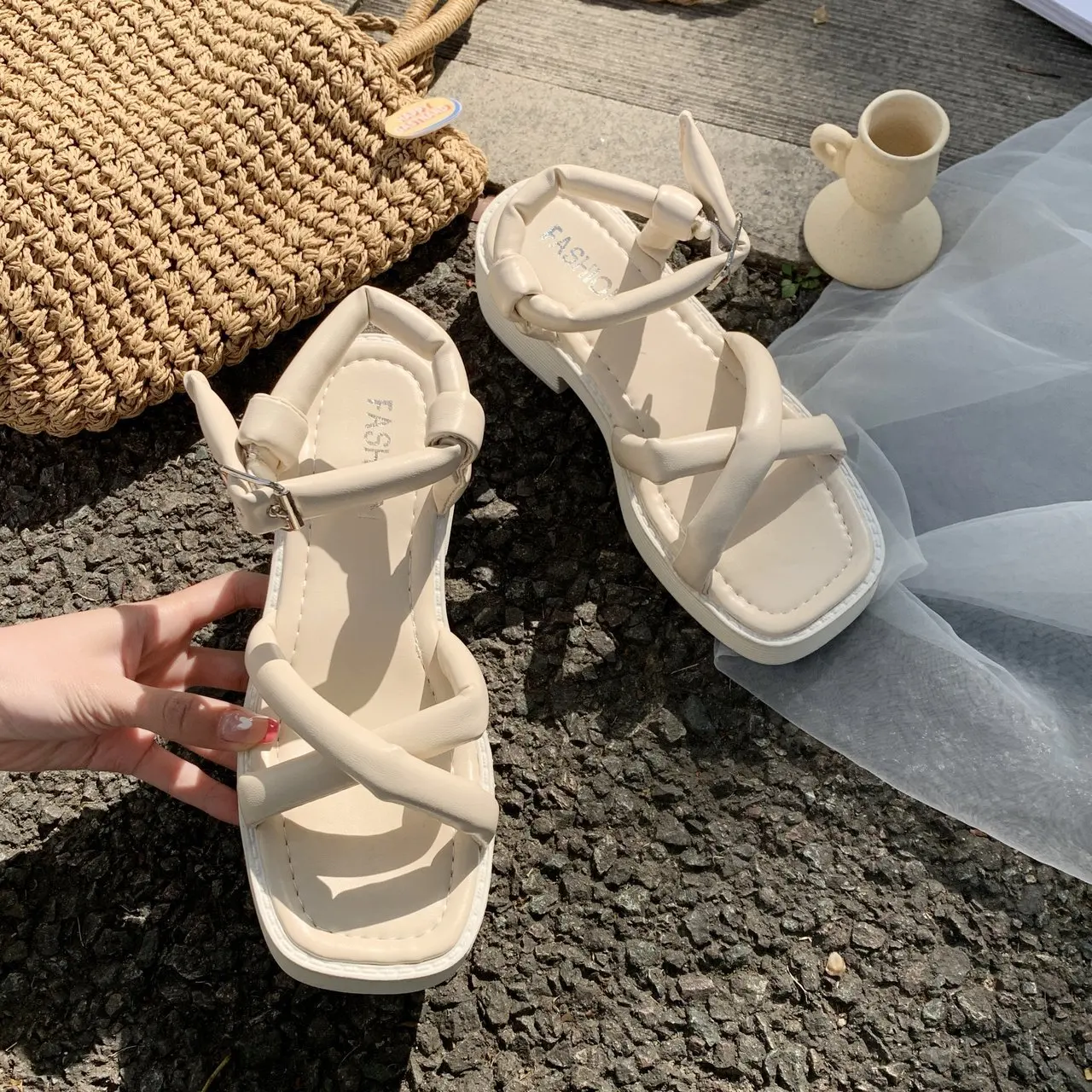 Новые женские сандалии на платформе, летние сандалии на танкетке, женские пляжные сандалии на толстой подошве, женская обувь BC358