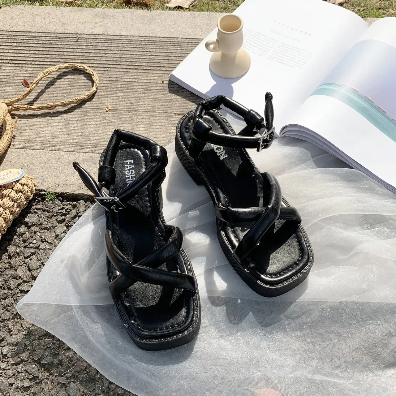 Босоножки женские весенне-летние, на толстой сетке, с одной пряжкой...